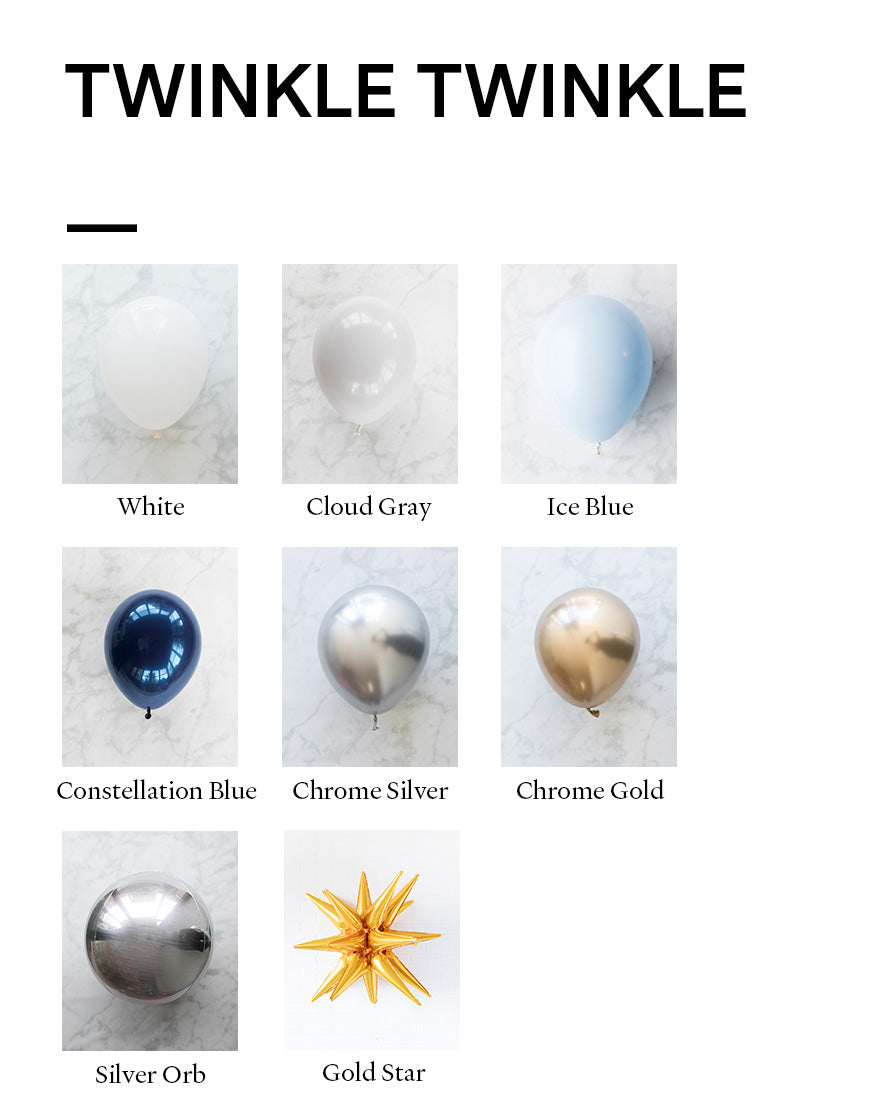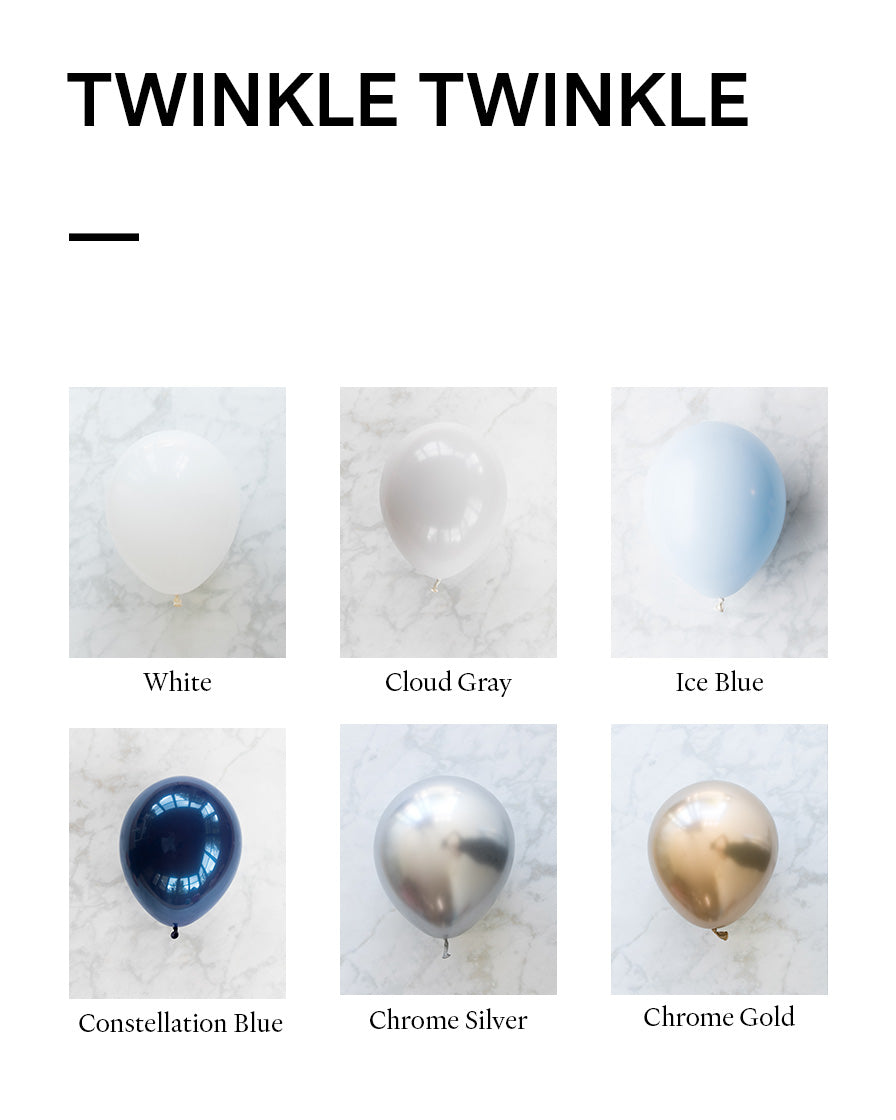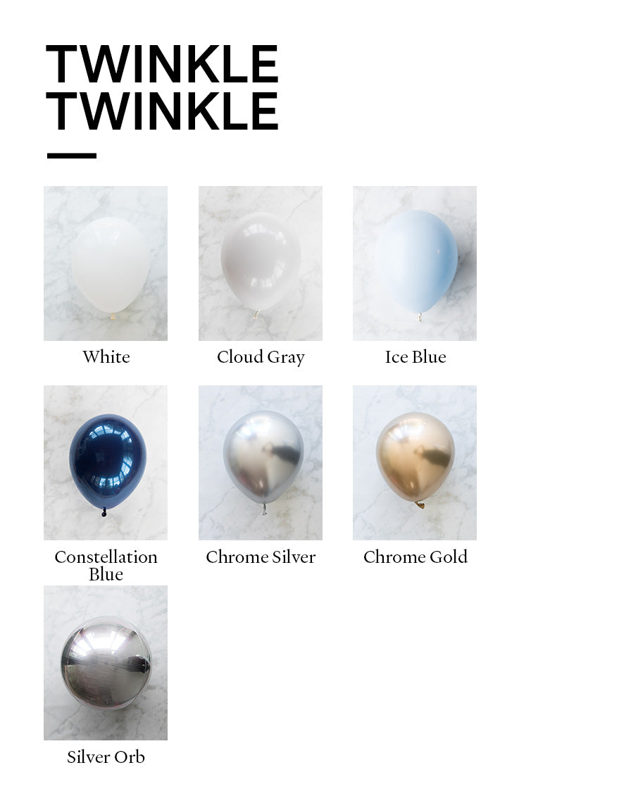 Balloon - white, cloud grey, ice blue, constellation blue, chrome silver, chrome gold