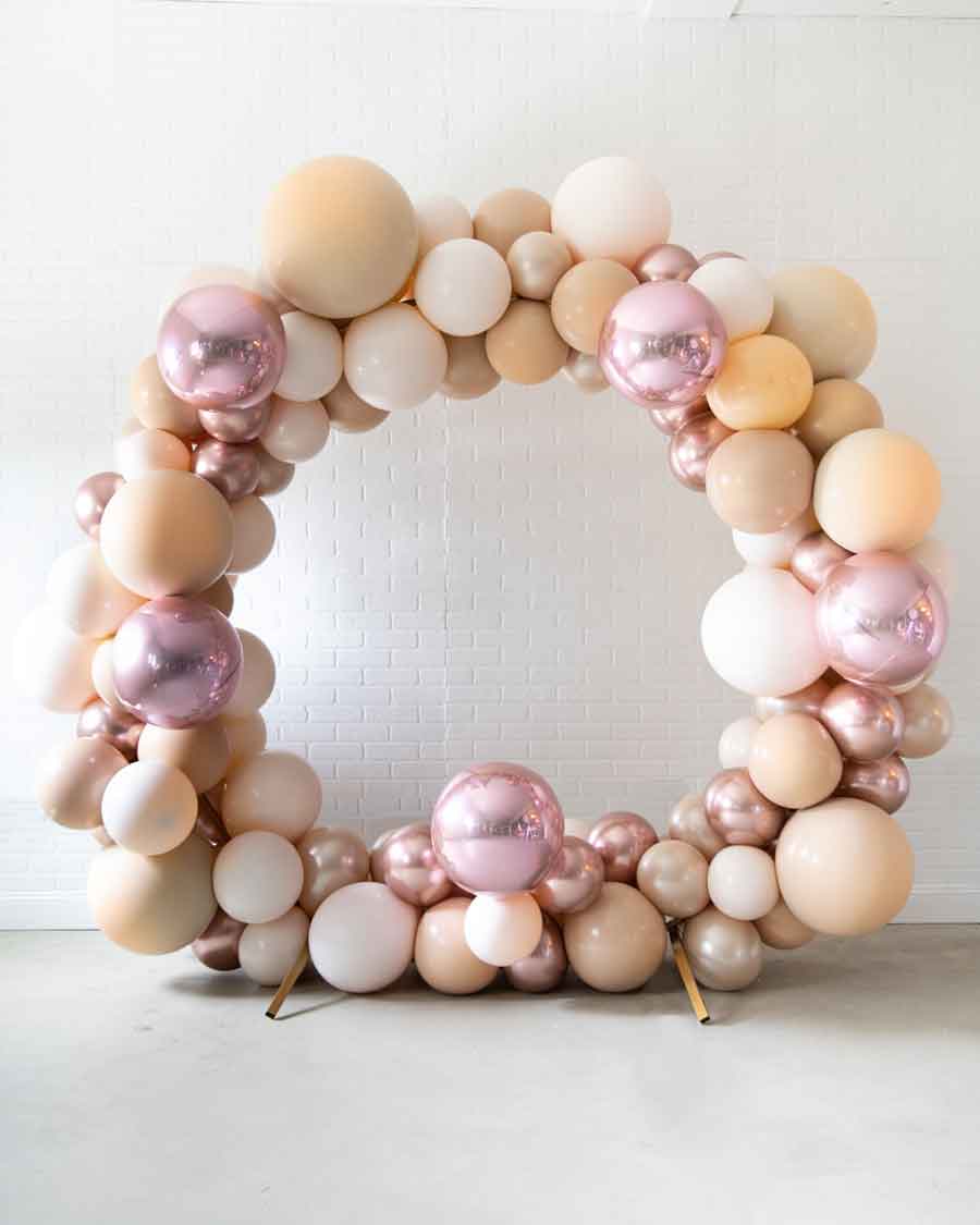Make this a celebration you'll never forget with our signature garland on circular frame. This design creates an instant photo backdrop that your guests will love! With a gold frame this stand alone design can be used in any space with ease.