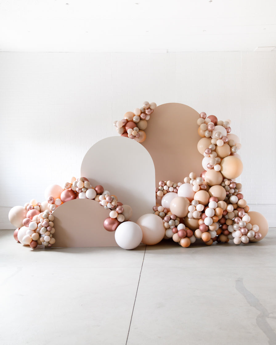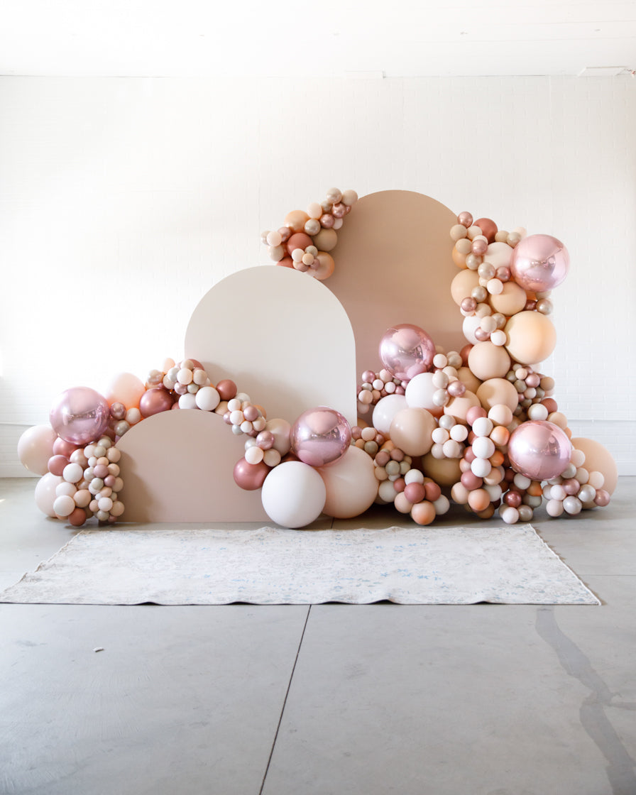 Stand out in style with this panel and balloon garland design. This includes a 7ft panel backdrop with organic balloon garland to match. Add foil accents to make your photo backdrop stand out even more!