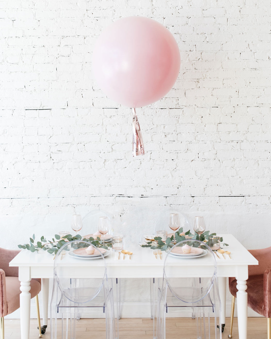 Pearl Light Rose Giant Balloon and Rose Gold Skirt Centerpiece