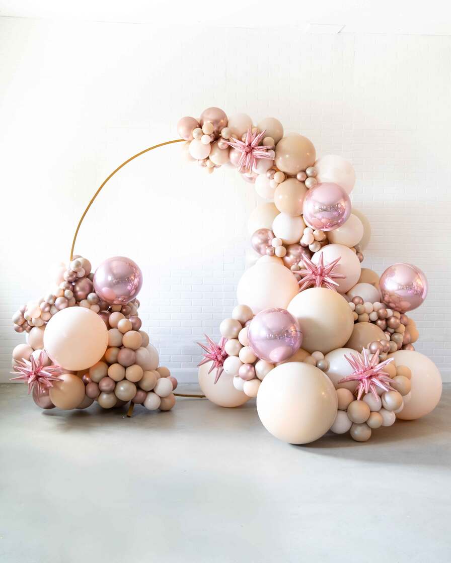 Make this a celebration you'll never forget with our signature garland on circular frame. This design creates an instant photo backdrop that your guests will love! With a gold frame this stand alone design can be used in any space with ease.
