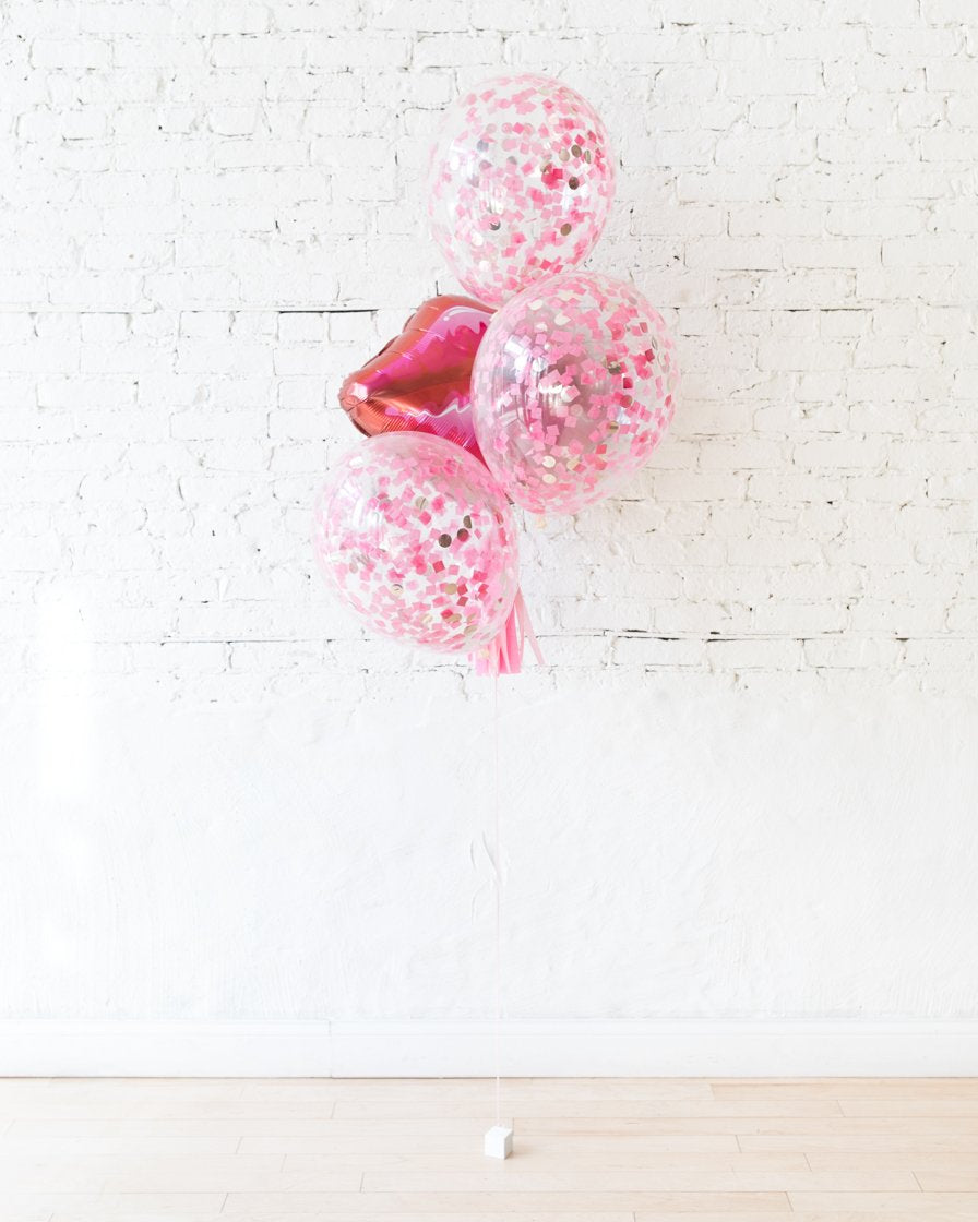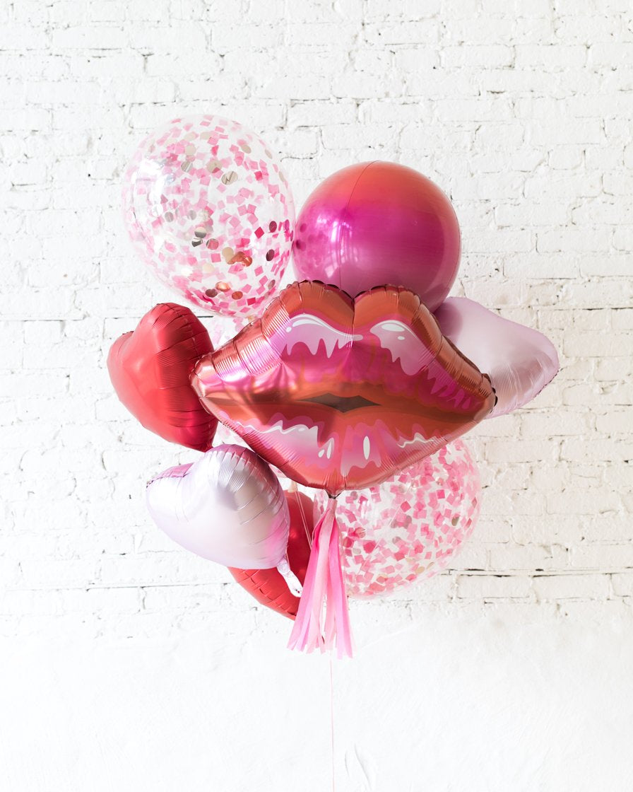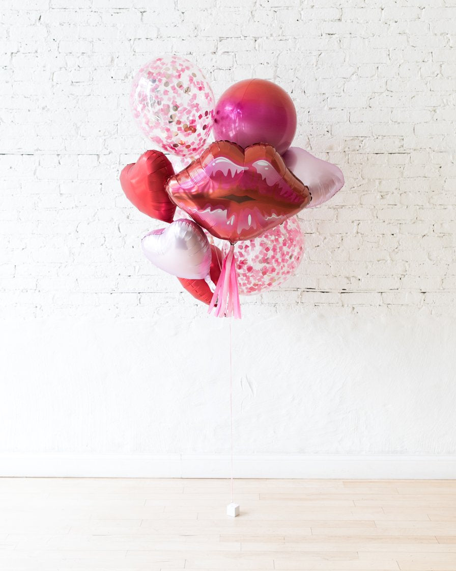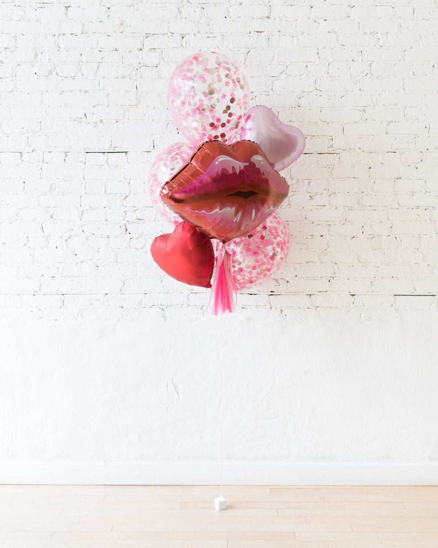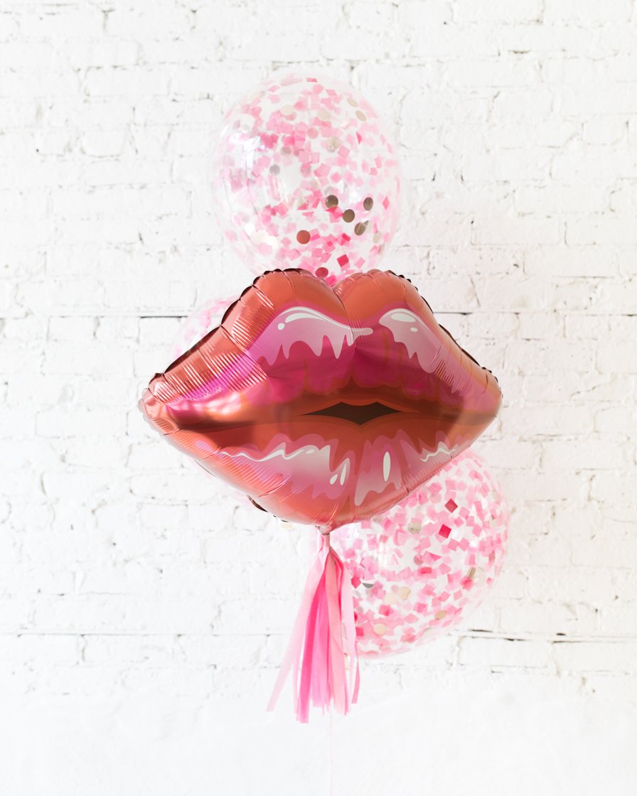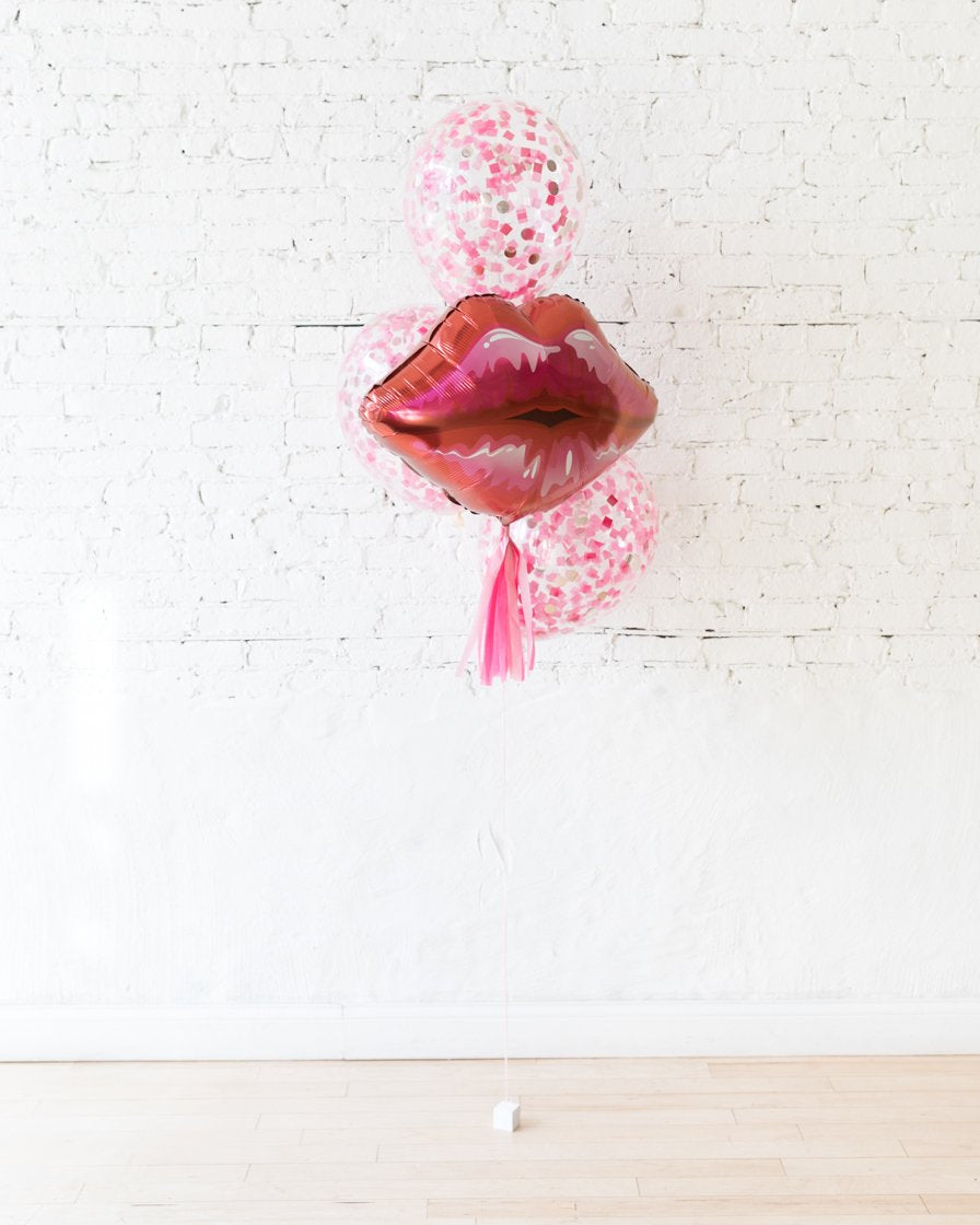 Celebrate a special day! The Big Kiss bouquet combines colorful confetti, satin heart and a large foil lip for a fun gift.