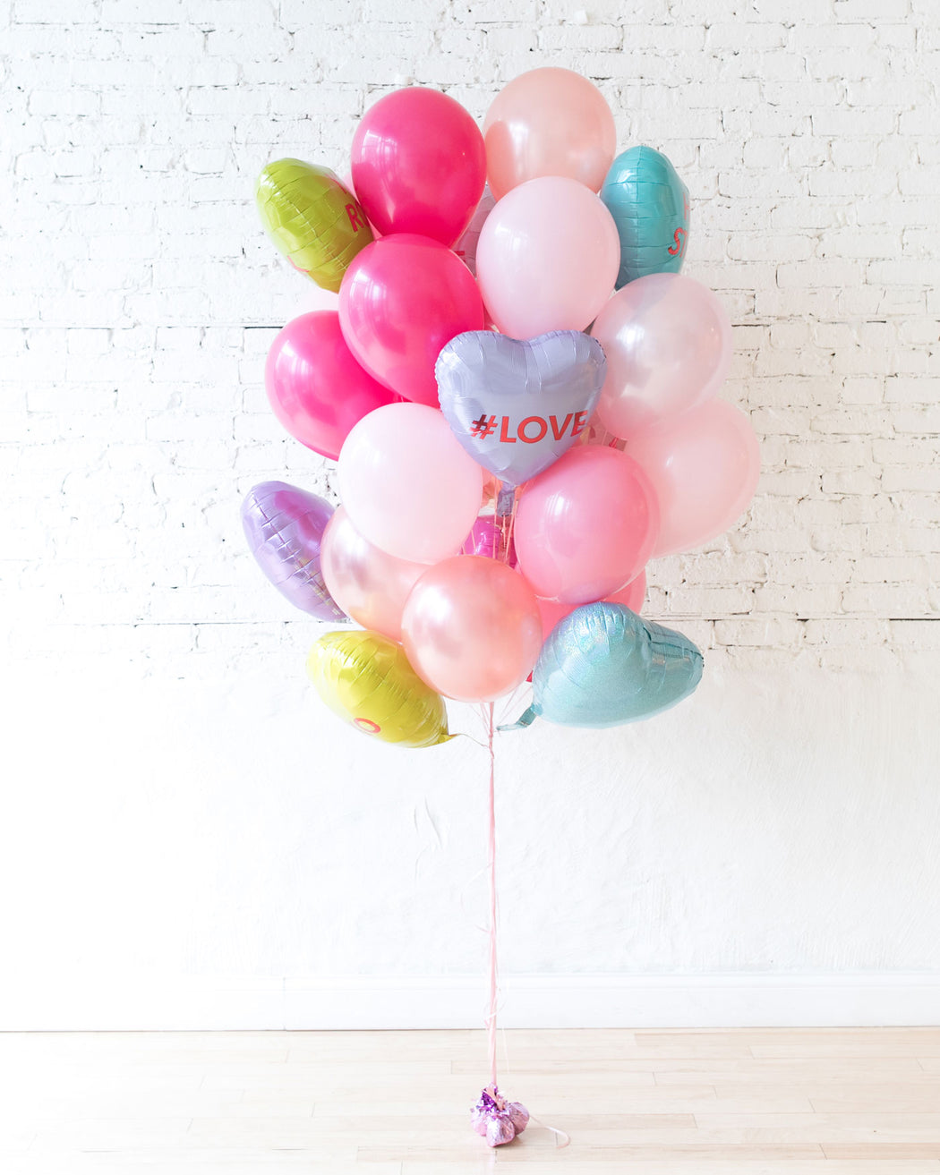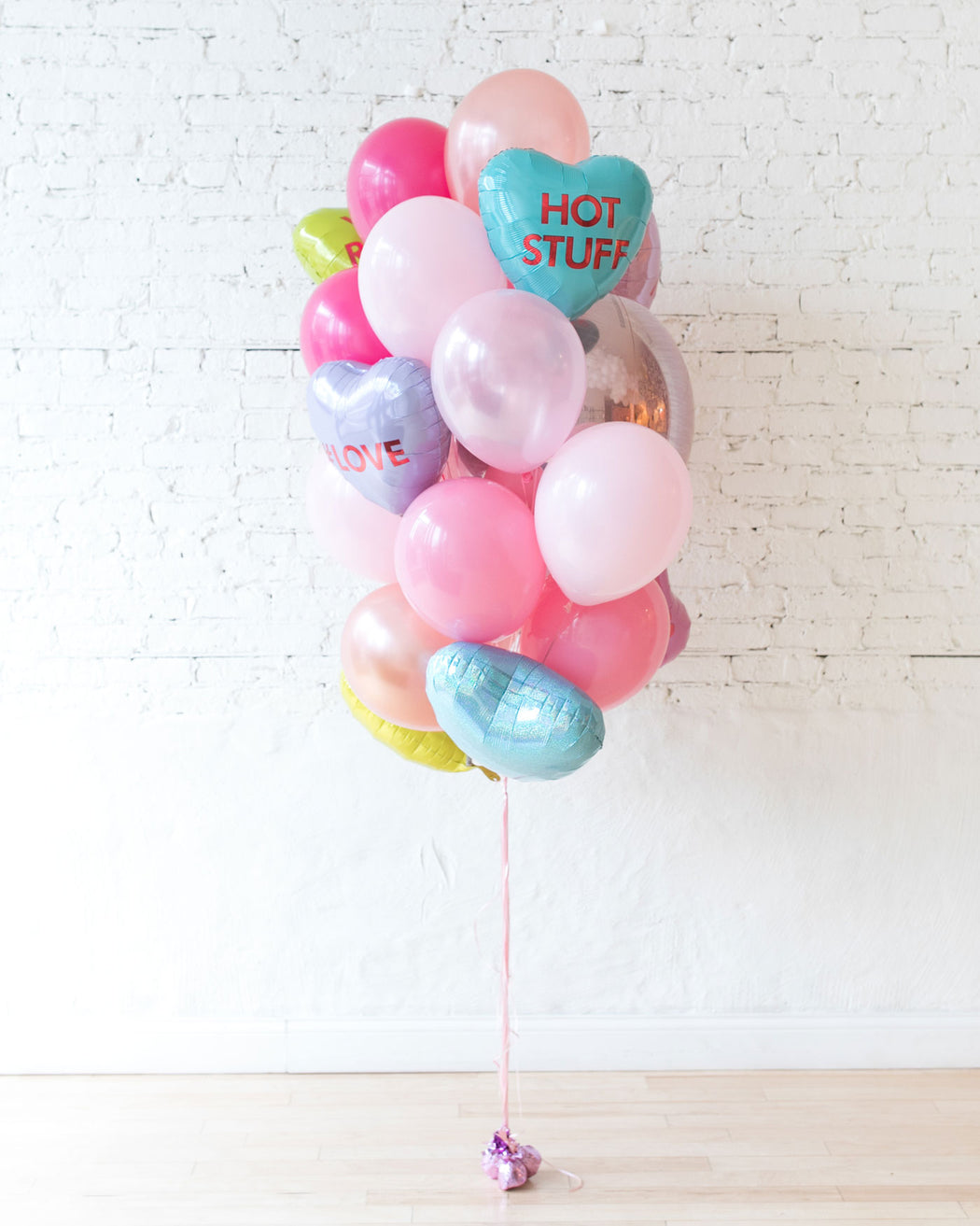 Our biggest balloon bouquet yet! A colorful mix of heart foil balloons and our most popular pink shade latex balloons, this show-stopping, head-turning gift is sure to make an impression that will last for days.