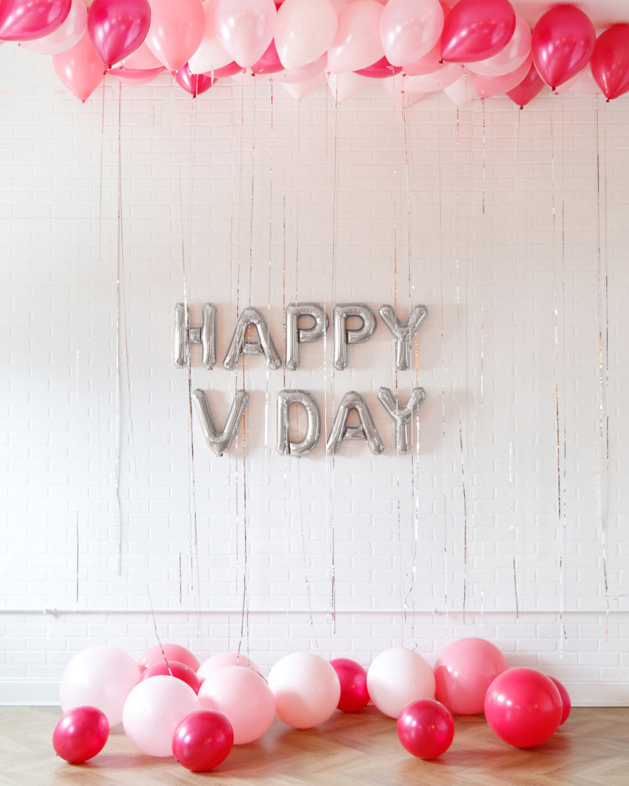 Create an easy and sweet Valentine's with this effortless balloon set! With pink ceiling balloons and matching floor balloons, you can fill the space in minutes! A Happy V-Day banner for the wall completes the look!