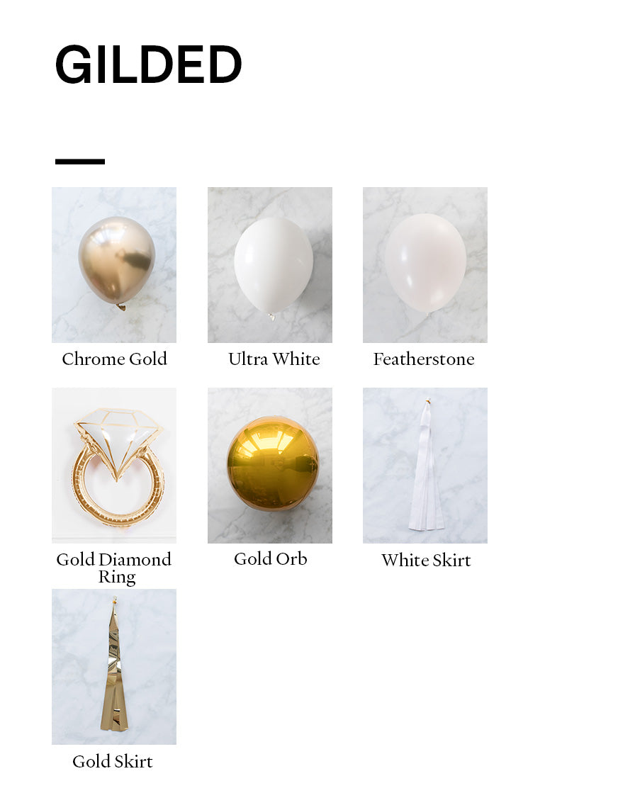 Balloons - chrome gold, ultra white, featherstone