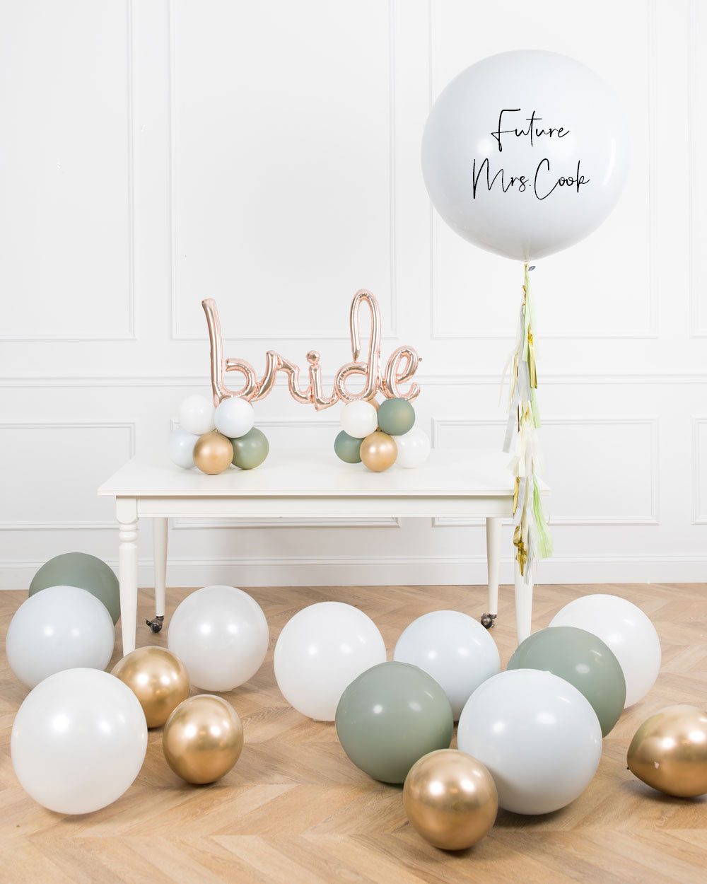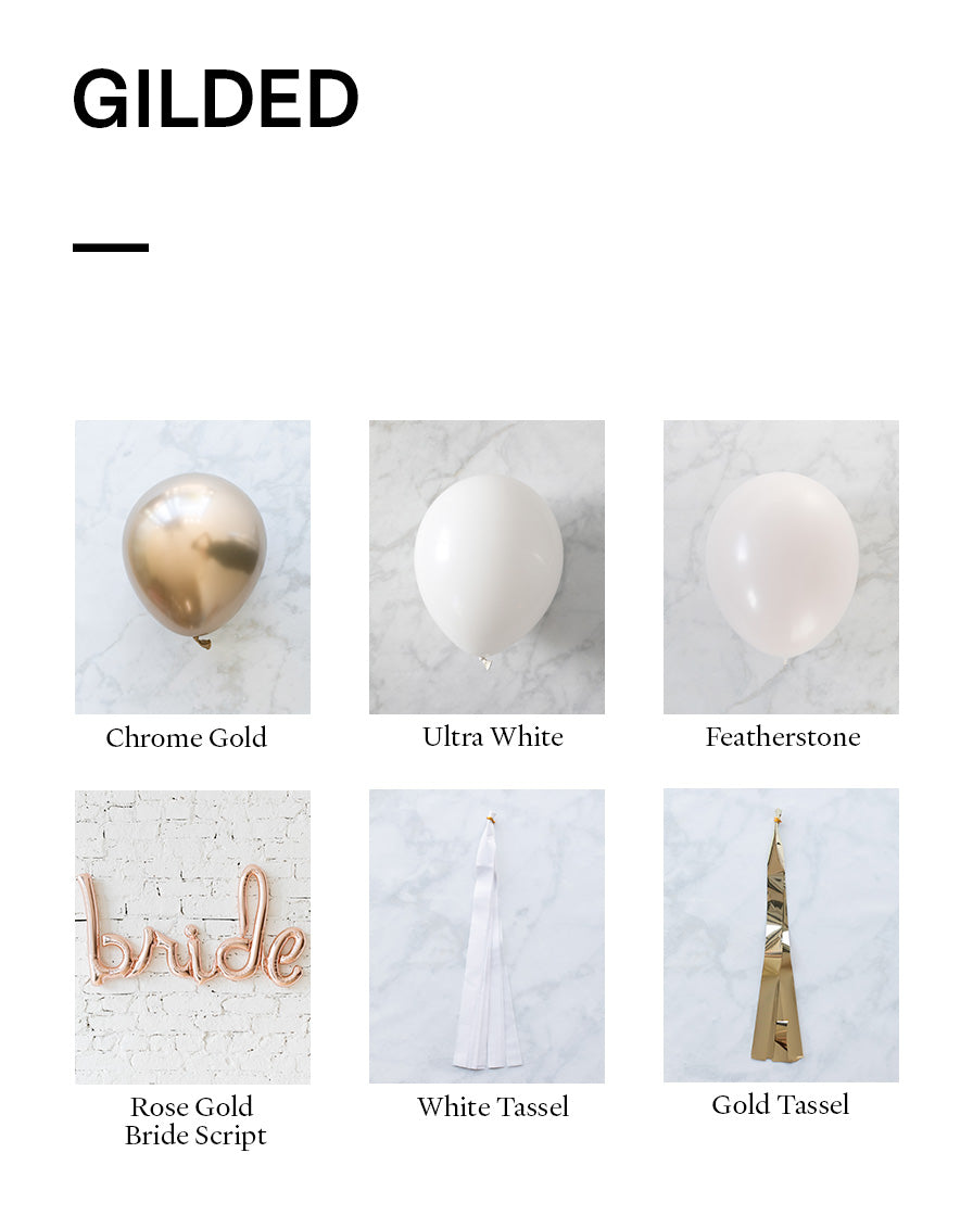 Bring the party to life with this fun and festive Gilded themed balloon set. This includes a floor balloons, a giant with tassel and bridal balloon centerpiece to create an amazing celebration.