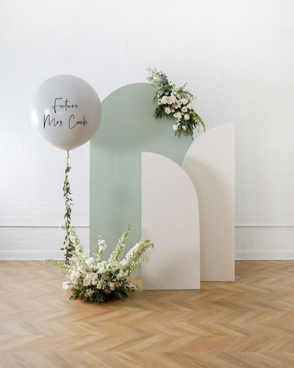 Shower her with plenty of love and style with this bold design. This includes our signature Bellamy panels with captivating floral accents, a giant balloon and our grande jardiniere to match.