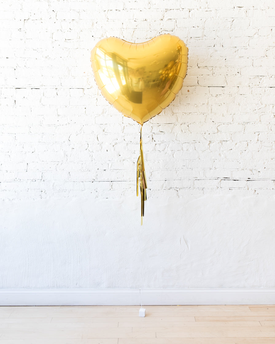 Golden - 36in Heart Foil Balloon with Half-Tassel