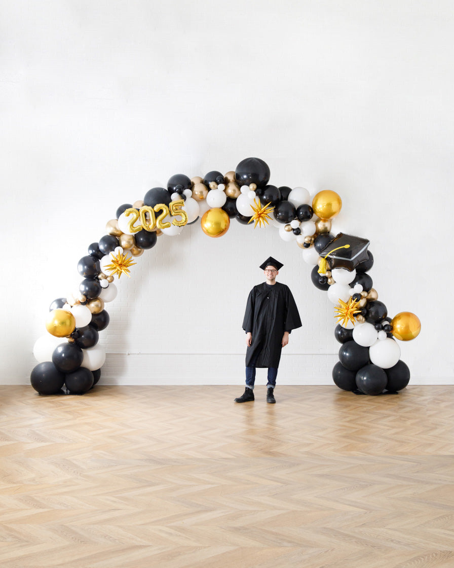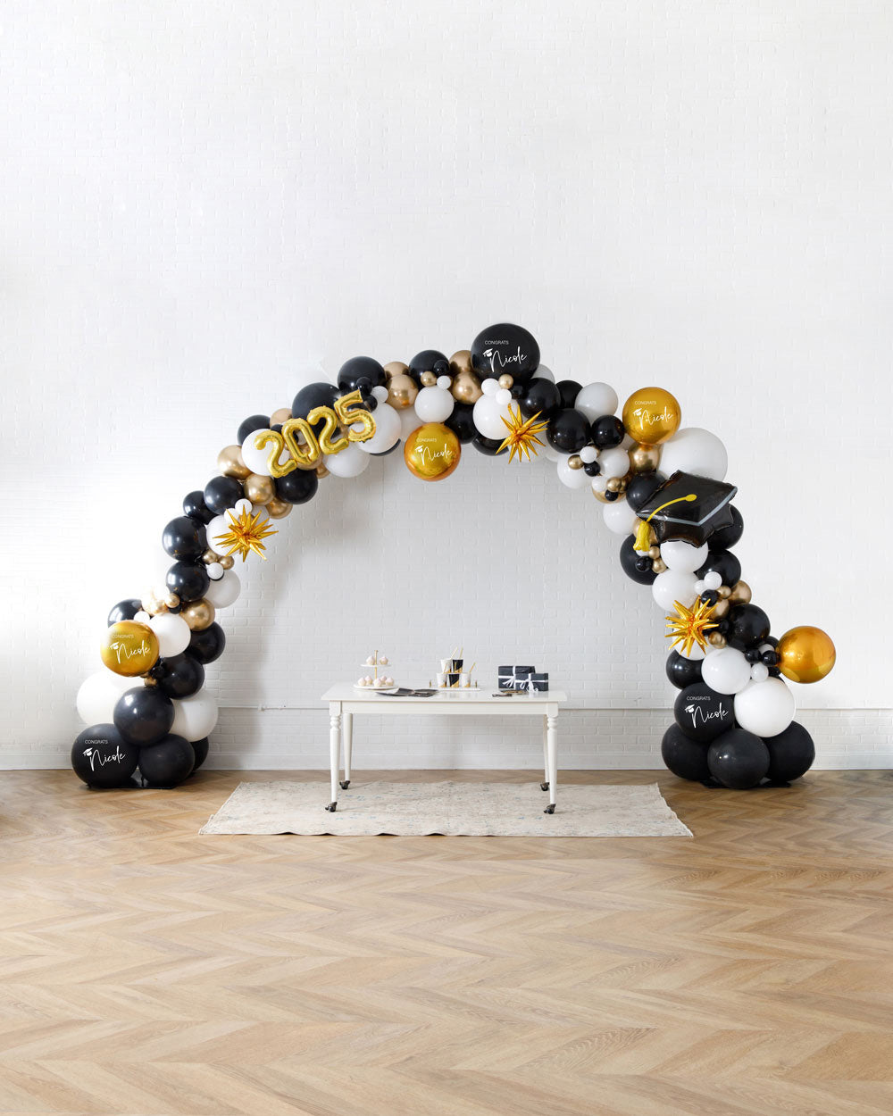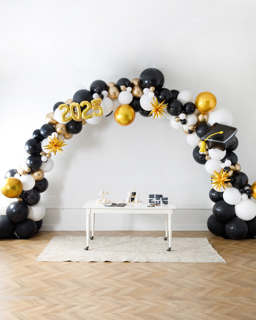 Make a grand display with a balloon arch like no other! This design works perfectly for a photo backdrop or entryway to greet guests in style. Add foil accents to really wow at your event.