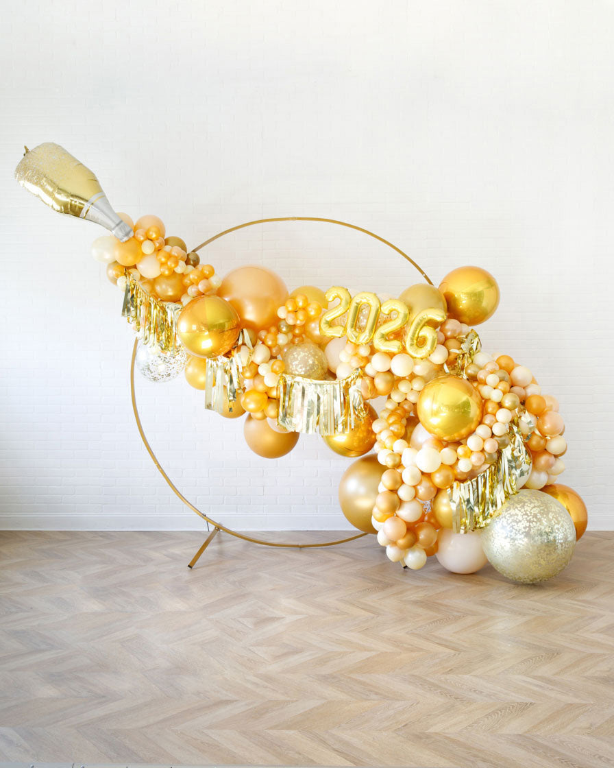 Pop the champagne and start celebrating your 2026 Grad in style! This circle frame with balloon garland set is the ultimate way to cheers this milestone accomplishment! Add more foils to glam up your graduation.
