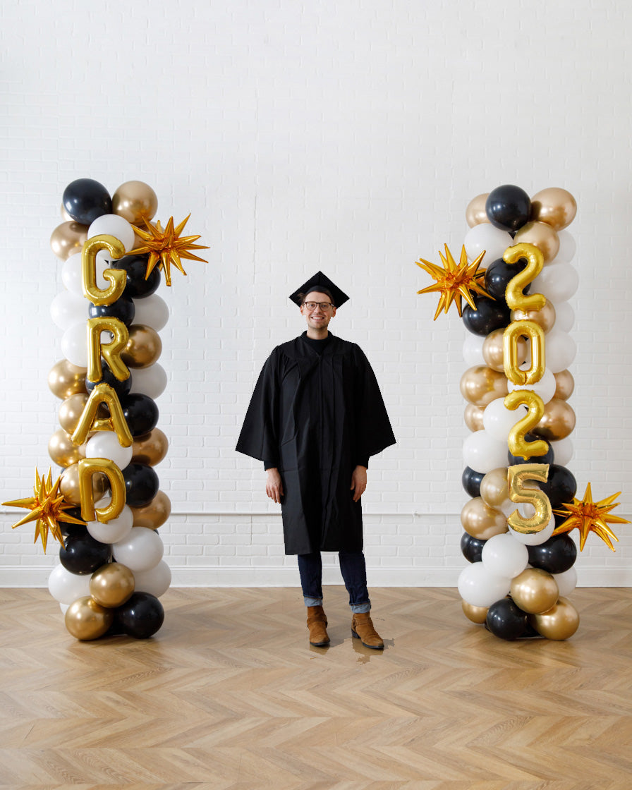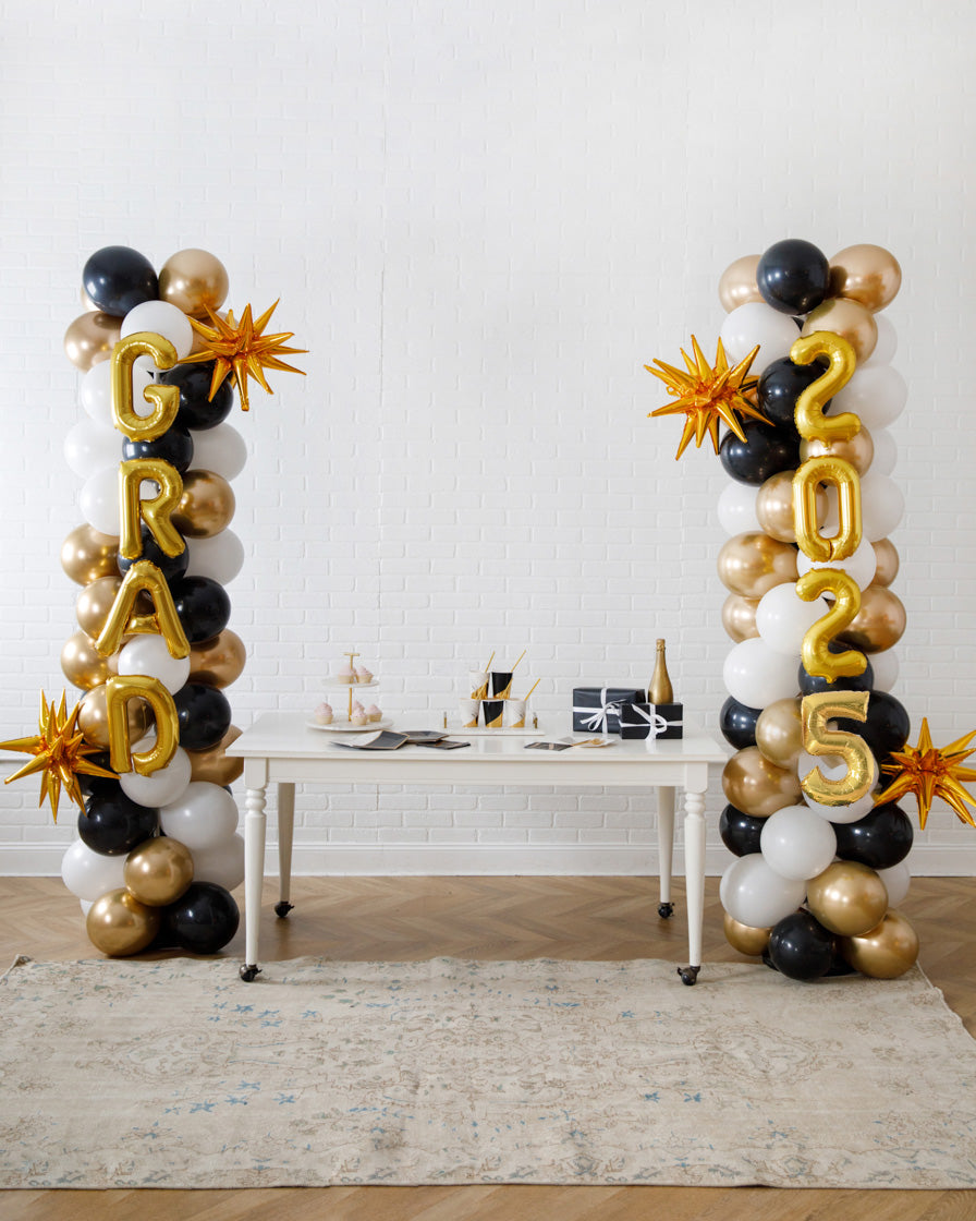 Make any room into a big graduation celebration with these two customizable graduation columns. Choose between two styles with your school colors and add festive foils to complete the look. Perfect for a party entry, photo op or flanking your gifts and sweets table.
