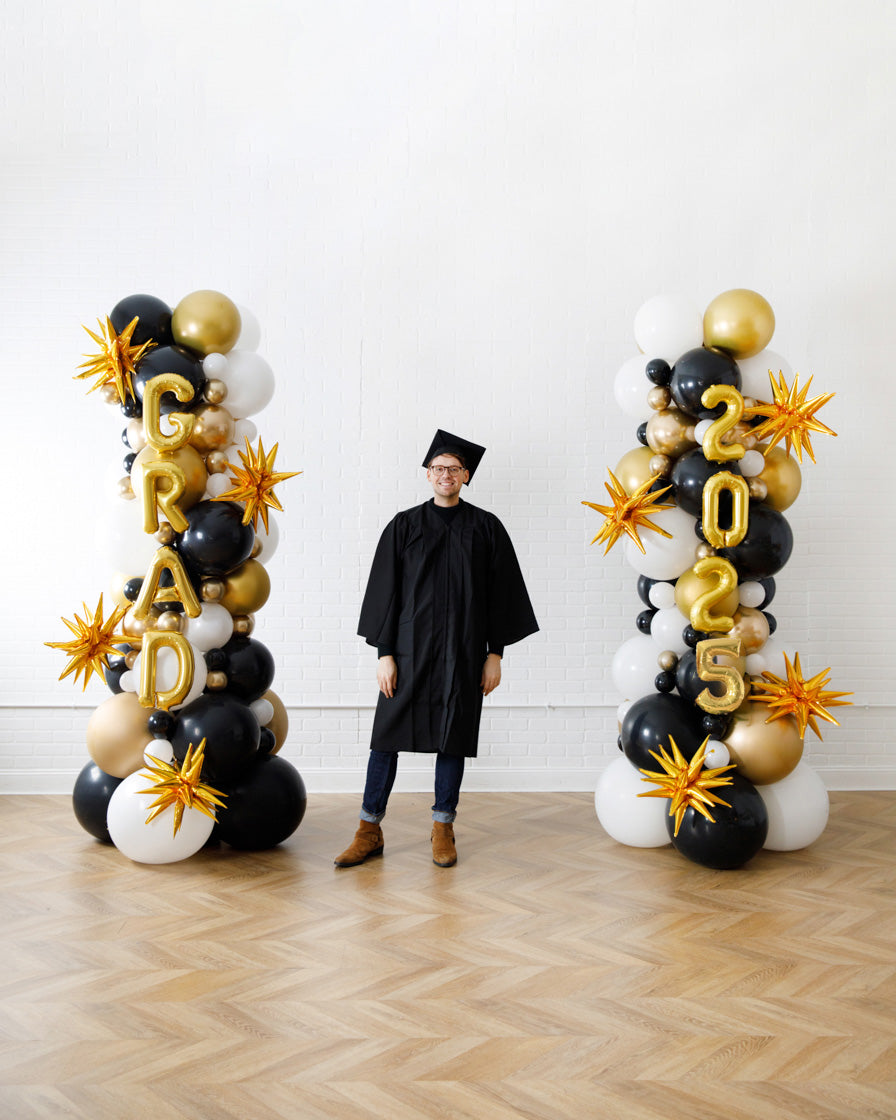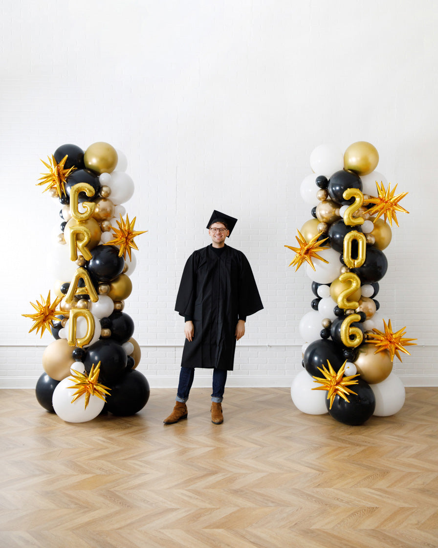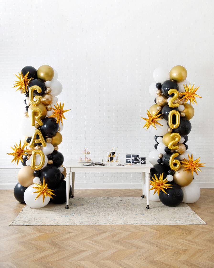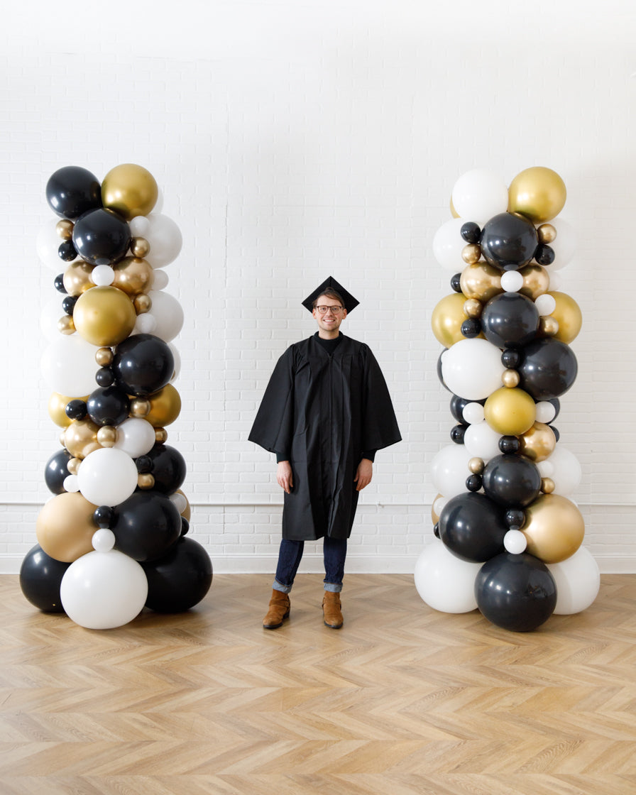 Make any room into a big graduation celebration with these two customizable graduation columns. Choose between two styles with your school colors and add festive foils to complete the look. Perfect for a party entry, photo op or flanking your gifts and sweets table.