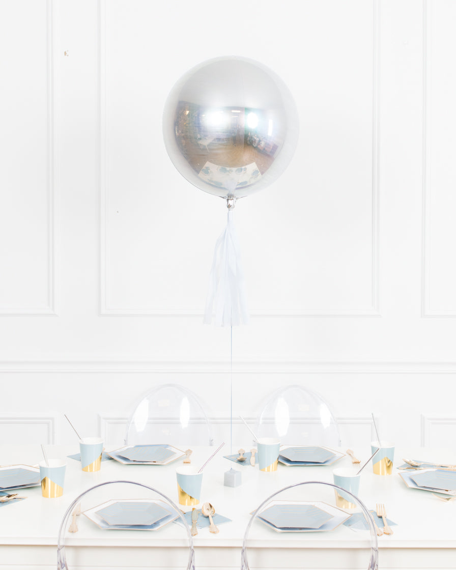 Bring your table to life with our gold orb with white skirt! Add this to your table for a sweet pop of color for your baptism or first communion. Also, a great choice for sweets table and favor's cart.
