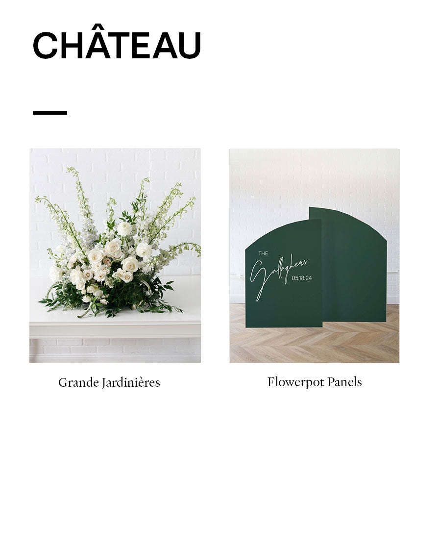 Create an entryway like no other with our Darcy Panel set. This includes two colored panels with two captivating grand Jardinières that elevate any space. This works perfectly to greet guests by the entry, the bar or near the favors table.