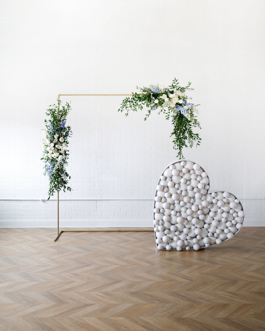 Decorate your celebration of love with this inspired set. With our signature gold frame, adorned in florals and a mosaic balloon heart, you'll have a photo worthy moment on your big day.