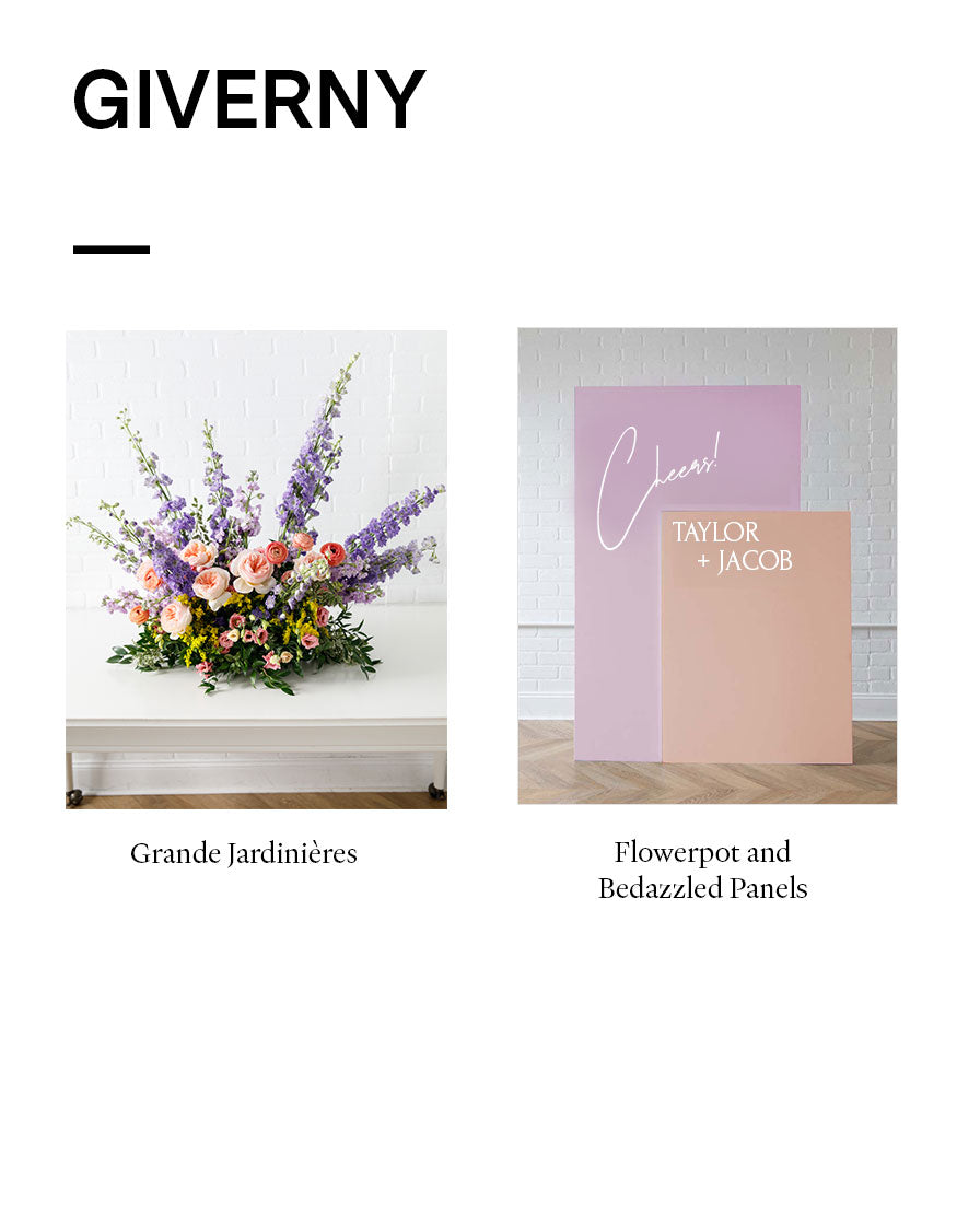 Create an entryway like no other with our new Fabienne Panel set. This includes two colored panels with two captivating grand Jardinières that elevate any space. This works perfectly to greet guests by the entry, the bar or near the favors table.