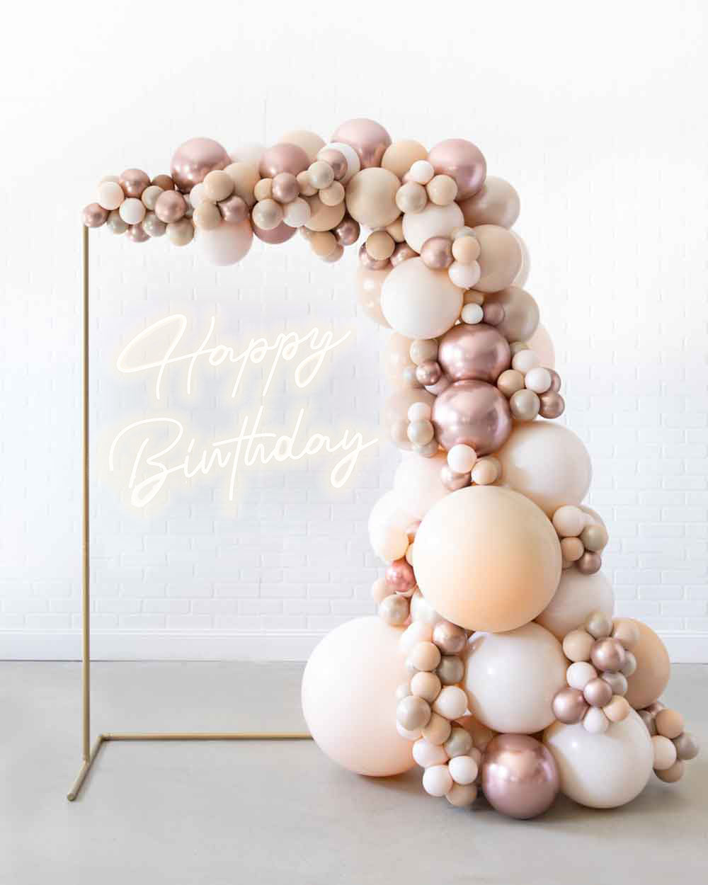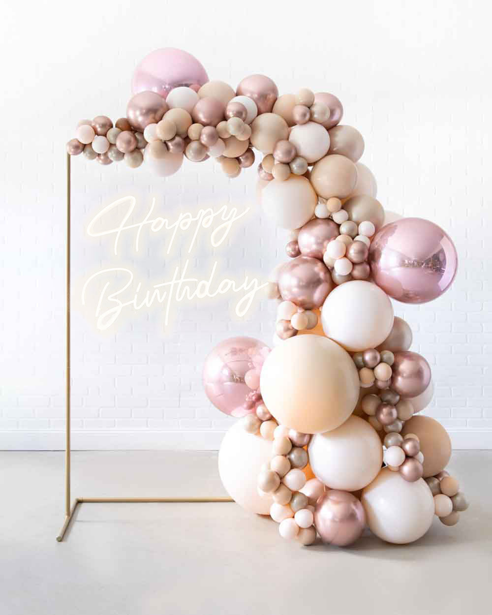 Light up your event with the ultimate backdrop! This balloon garland design includes balloons along a circular frame, as well as a beautiful neon sign to highlight your occasion in style! This works perfectly in any space and will wow your guests!