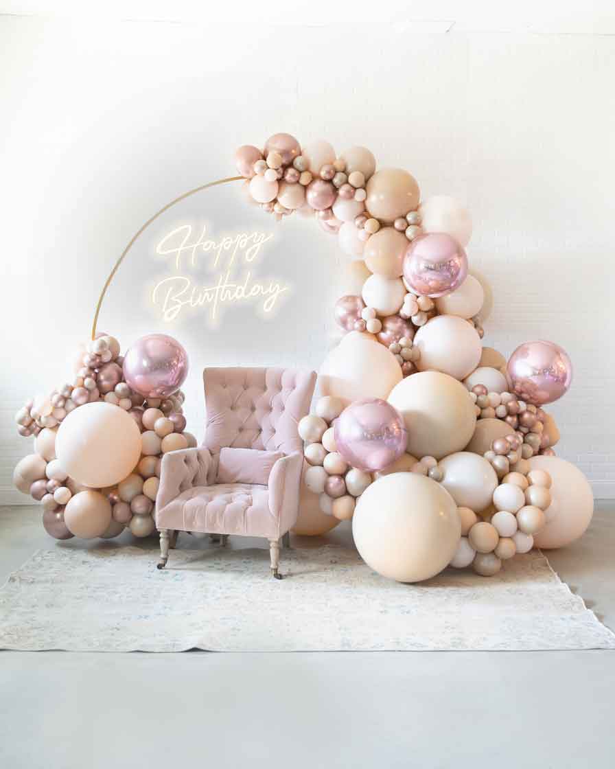 Light up your event with the ultimate backdrop! This balloon garland design includes balloons along a circular frame, as well as a beautiful neon sign to highlight your occasion in style! This works perfectly in any space and will wow your guests!