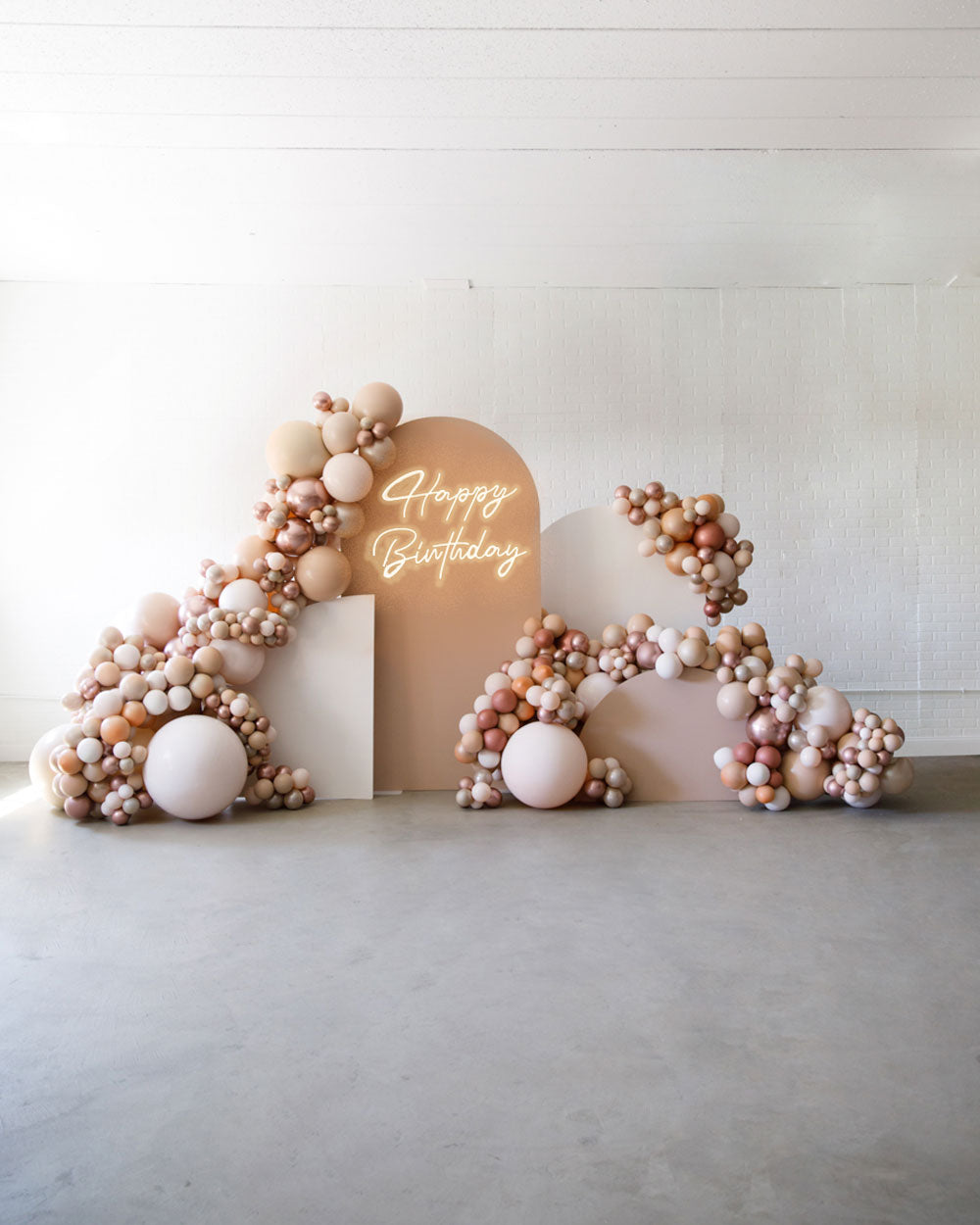 Stand out in style with this panel and balloon garland design. This includes a 7ft panel backdrop with organic balloon garland to match. Add foil accents to make your photo backdrop stand out even more!
