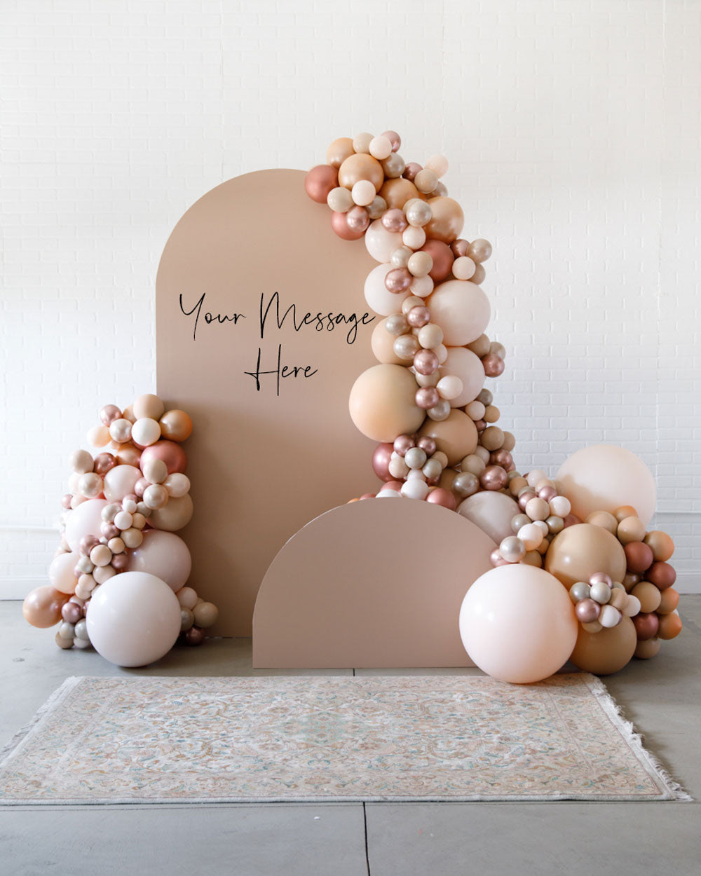 Stand out in style with this panel and balloon garland design. This includes a 7ft panel backdrop with organic balloon garland to match. Add foil accents to make your photo backdrop stand out even more!