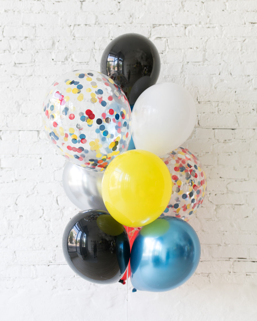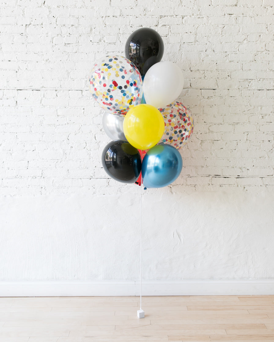 GIFT-Superhero Theme Confetti and 11in Balloons - bouquet of 10