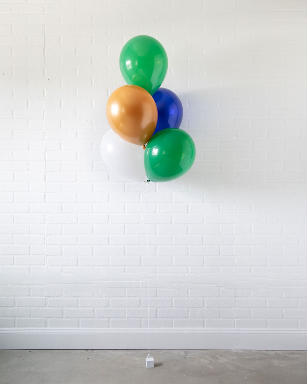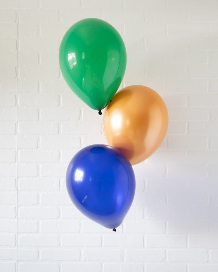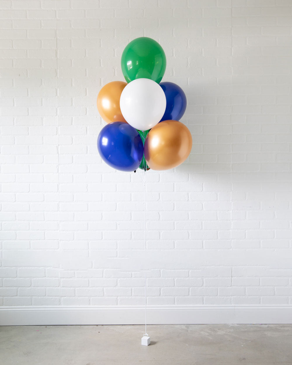Create an easy and fun birthday with a classic helium-filled balloon bouquet that can dress up any space. Includes 3 balloons in a bright palette of green, gold and navy for a football themed kids bash! Perfect for celebrations at home, restaurants or party rooms.