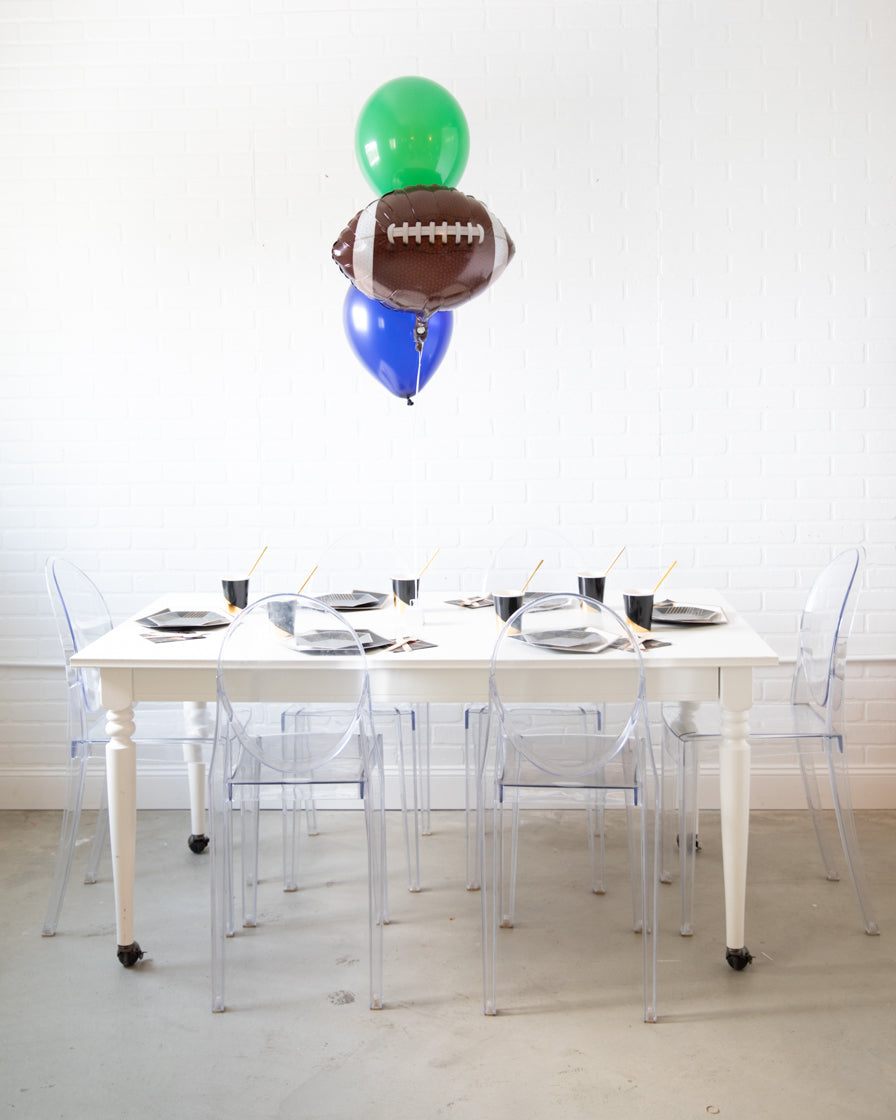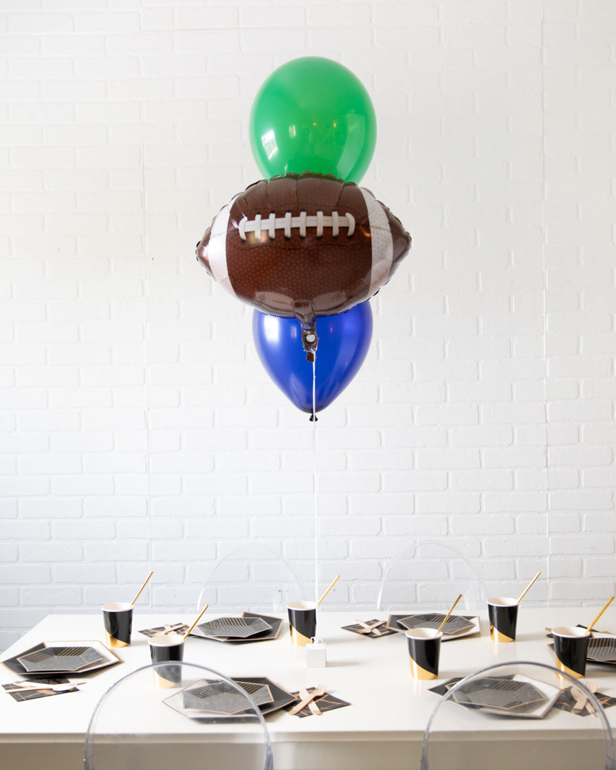 Our 11in balloon and foil centerpiece bouquet is a versatile choice that can dress up any tabletop. Includes a football foil balloon, perfect for a kids football themed birthday party. Use for celebrations at home, party room, venue or restaurant.