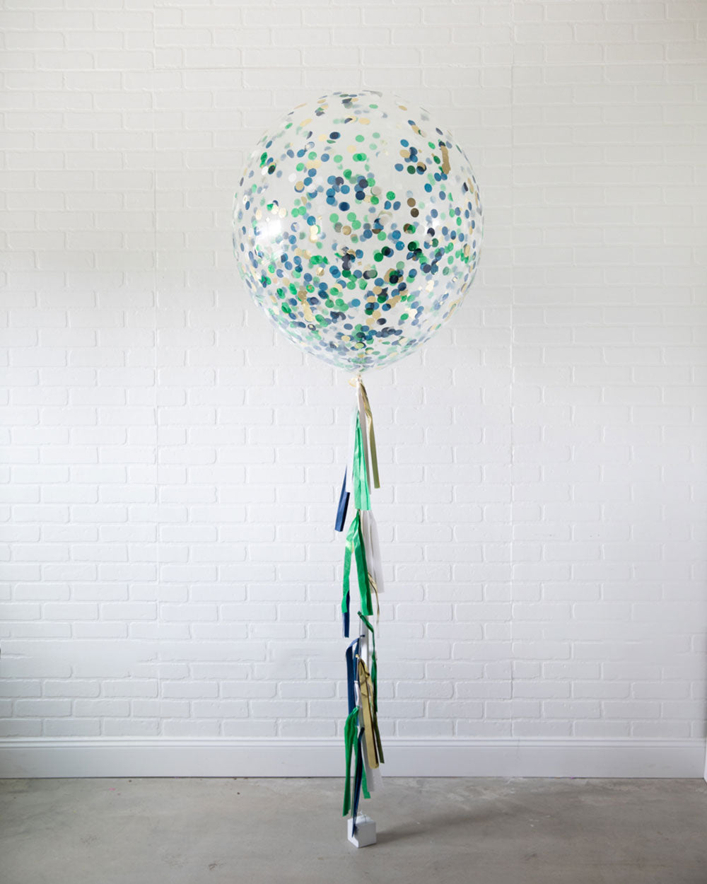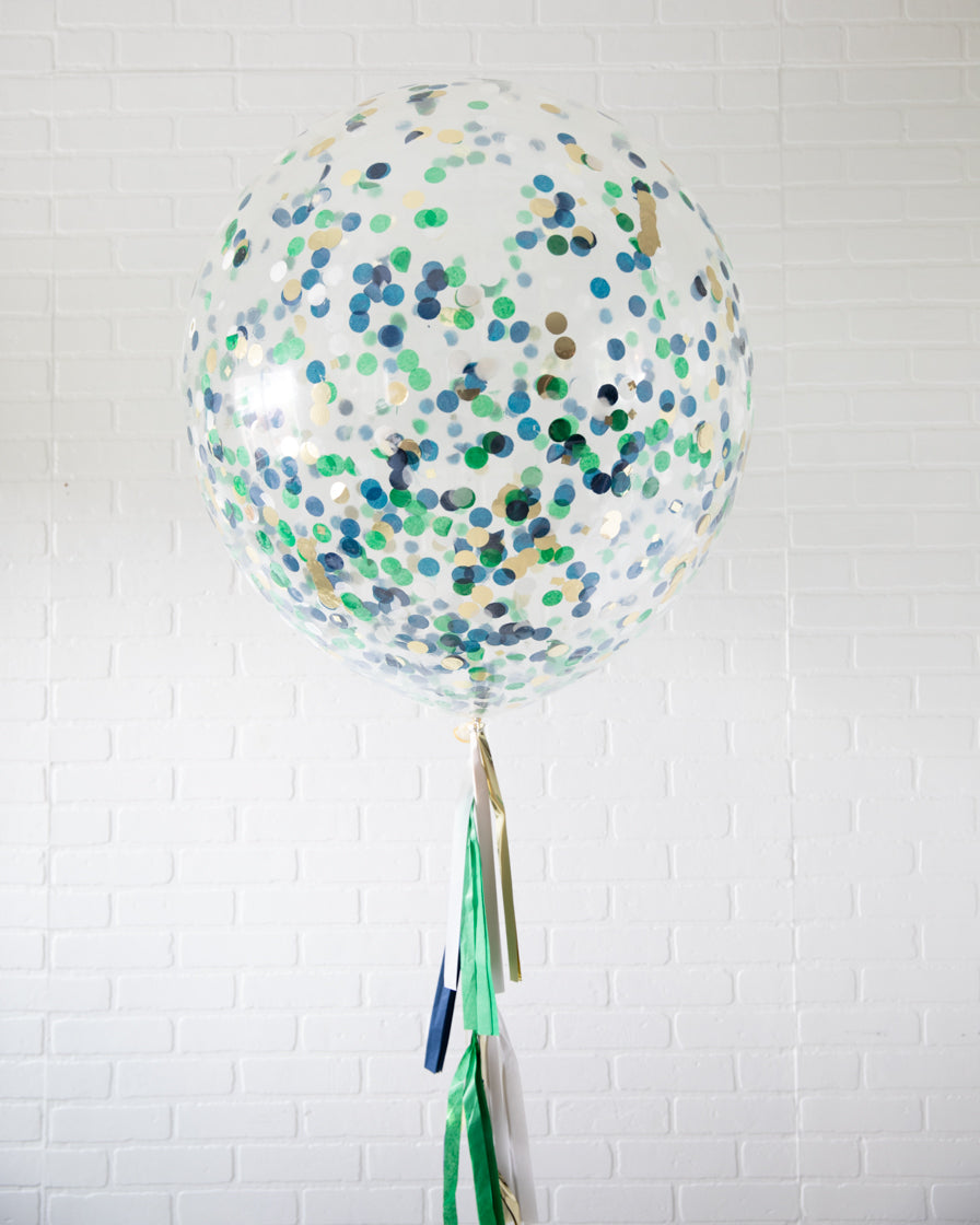 Balloon - clear Confetti - Navy, Green, White, Gold