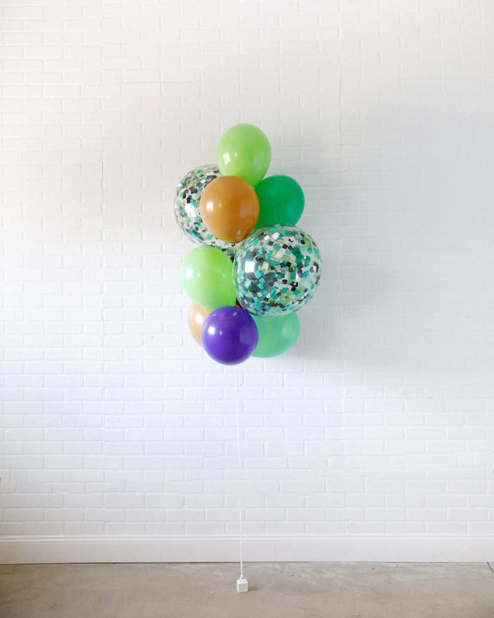 Bring fun to your Minecraft party with our popular confetti bouquet. This helium-filled balloon bouquet includes bright balloons and matching confetti to add fun to any sweets table or backdrop.
