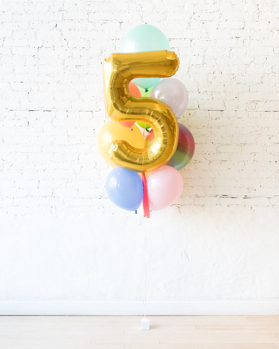 Celebrate a special day and send a gift to impress! This bouquet combines the popular foil numbers, which can be customized to any age, and a beautiful arrangement of balloons. Offered in all popular colors so you can select the palette of choice.