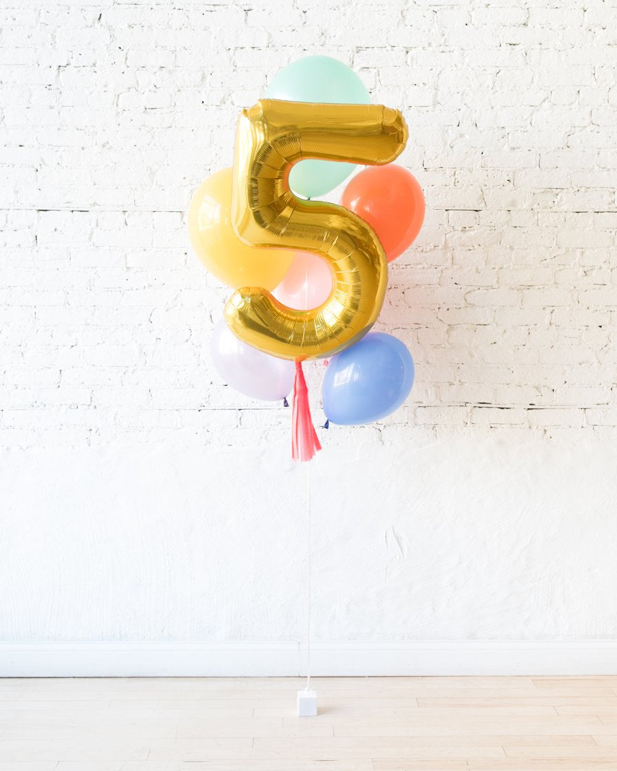 GIFT-Pastel Rainbow Palette Foil Number and Latex Balloon Bouquet