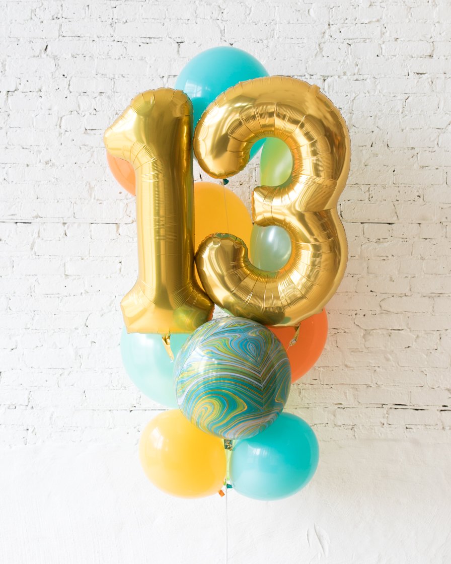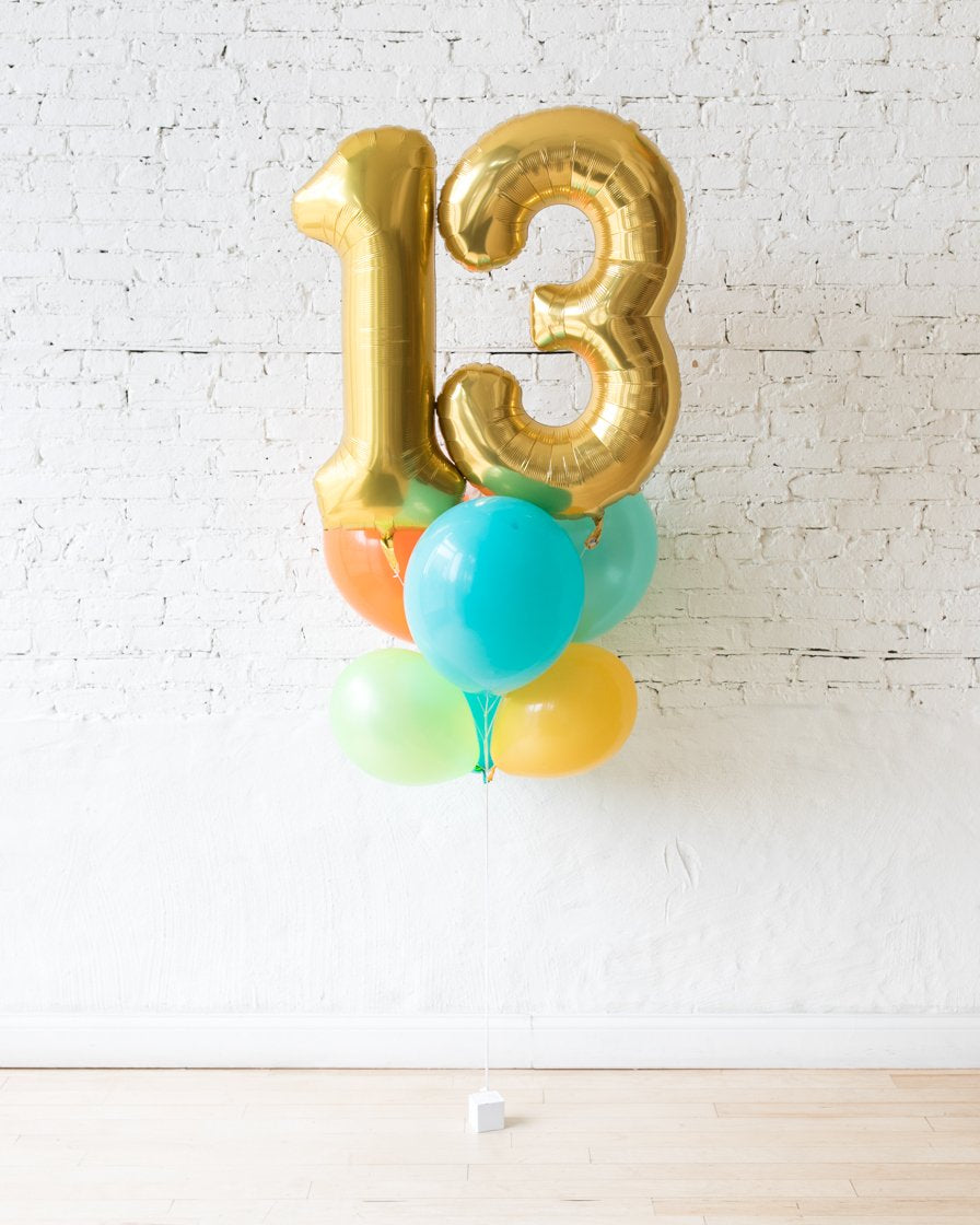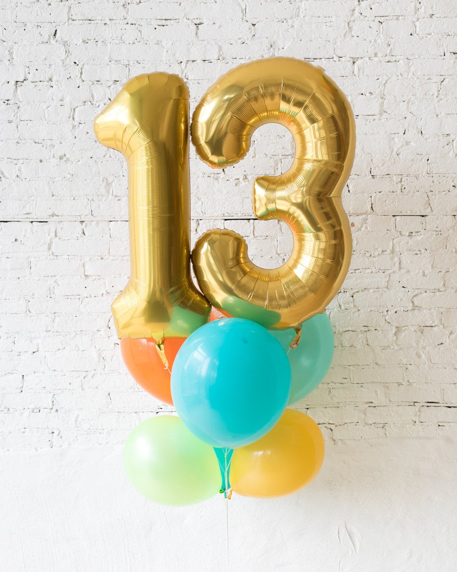 Celebrate a special day and send a gift to impress! This bouquet combines the popular foil numbers, which can be customized to any age, and a beautiful arrangement of balloons. Offered in all popular colors so you can select the palette of choice.