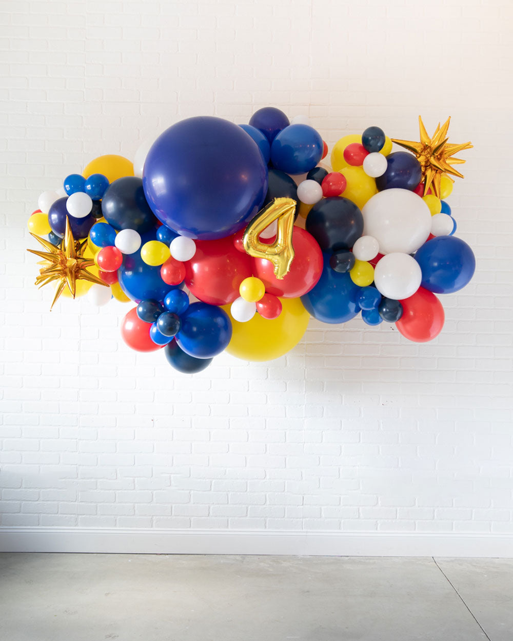 Spread some cheer with this eye-catching balloon garland. A great way to celebrate an important occasion, this air-filled 3ft or 6ft balloon backdrop piece can be installed above a sweets table or on a wall for a photo op. Includes a gold number foil balloon for added fun. Complete the look with giant balloons or balloon columns from this Paw Patrol collection.