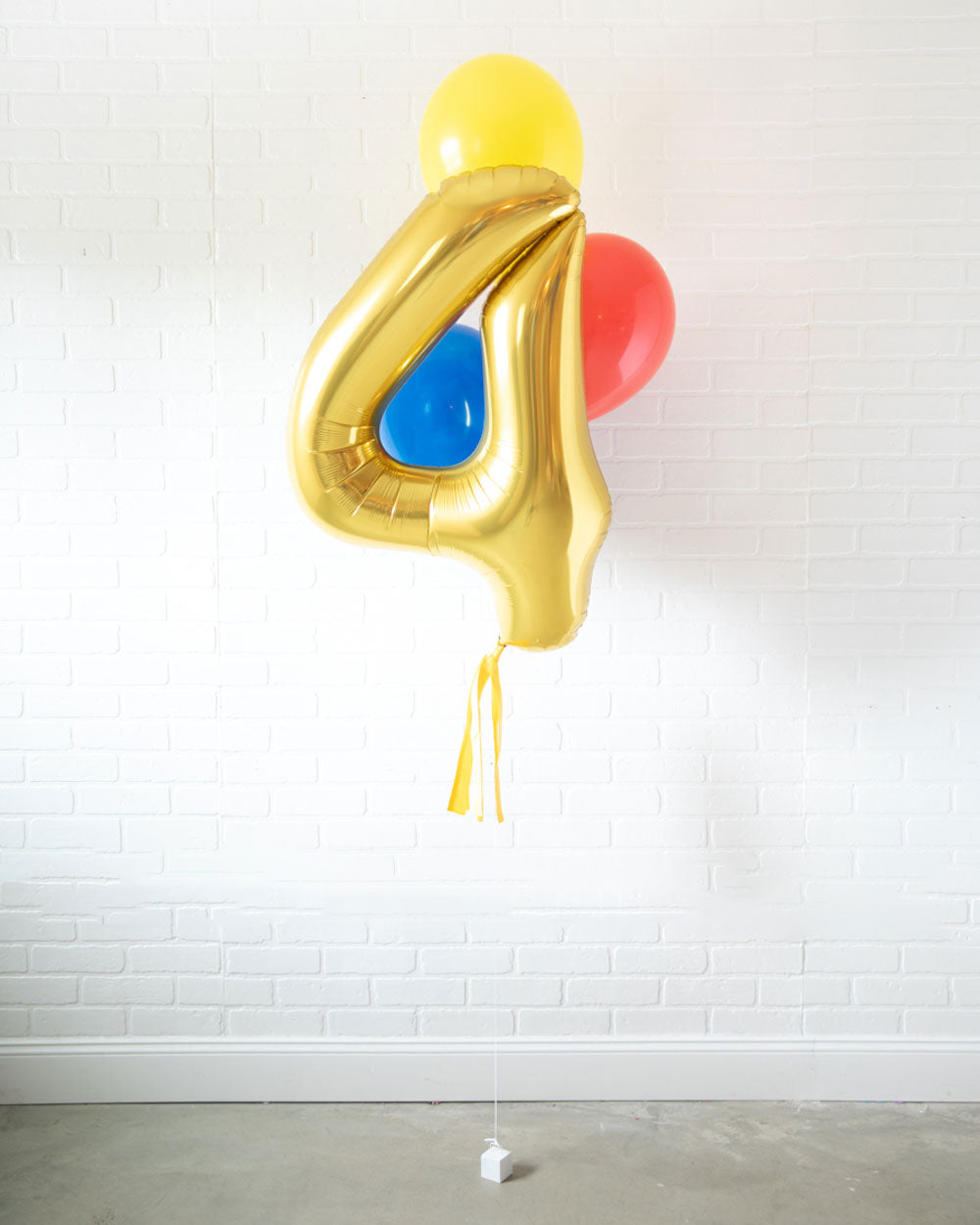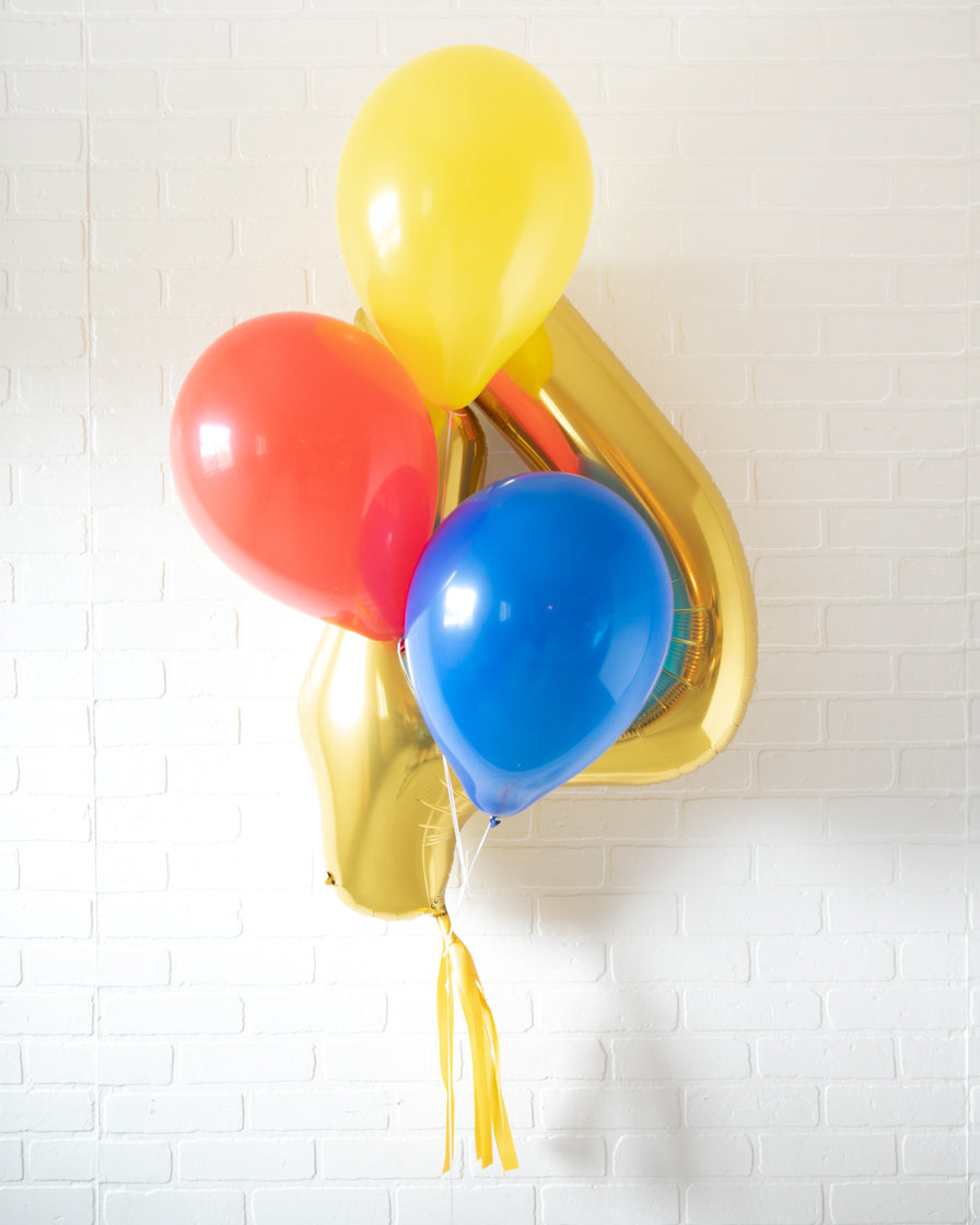 Everyone's favorite, the 34in foil number and skirt turned into a bouquet. This includes a gold number balloon and bright helium filled balloons for an effortless look. Great as decor or as photo prop. This product is Ready-To-Party™. Comes inflated, on a weight and dressed with skirt. Simply unbag and enjoy!