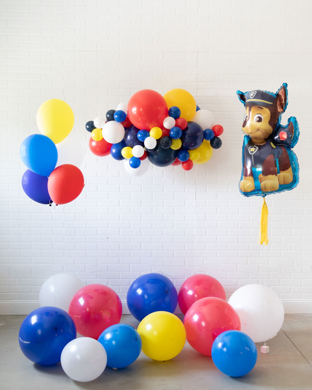 Bring the party to life with this fun and festive Paw Patrol themed birthday set. This includes a Chase Paw Patrol balloon and 3ft air filled balloon garland. With a balloon bouquet, add this to your sweets table for an amazing Paw Patrol themed birthday celebration.