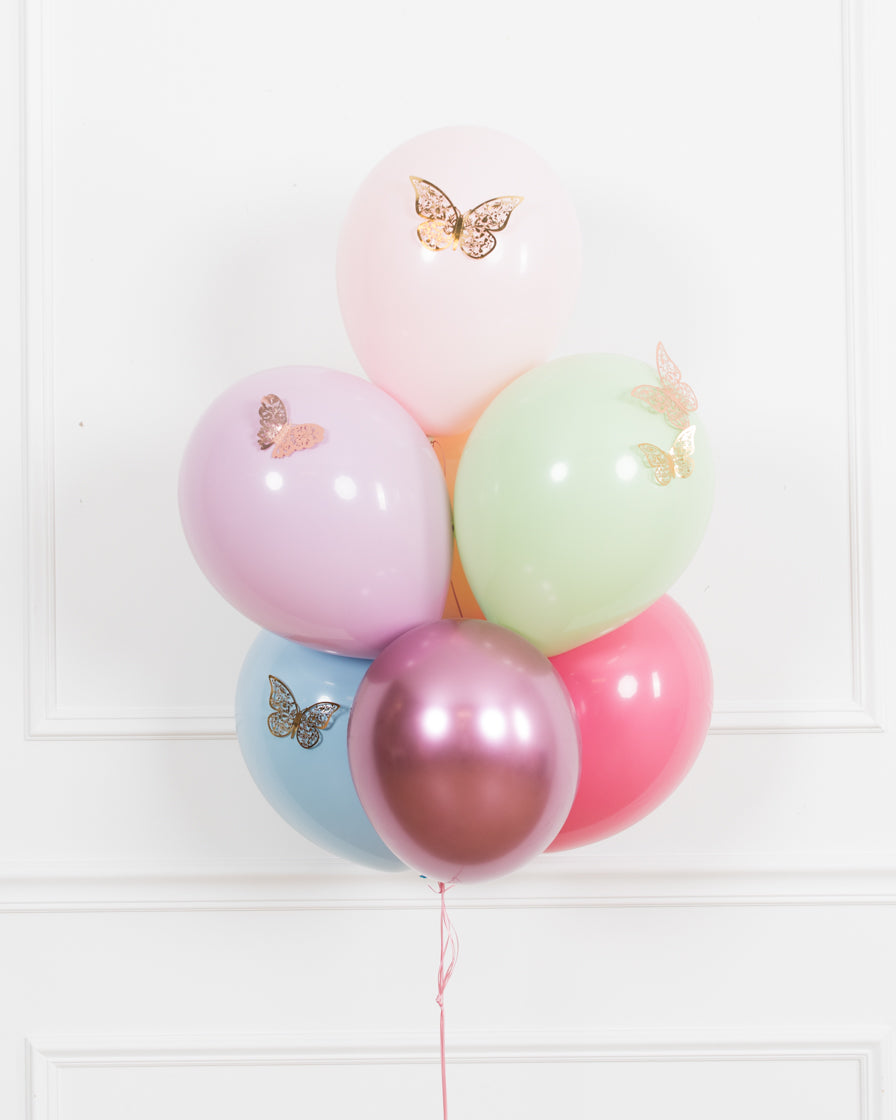 Add plenty of fun to your butterfly garden-inspired birthday for your little one. This includes a butterfly mylar balloon, pastel balloon bouquet and a number balloon column, to dress up any space in style.