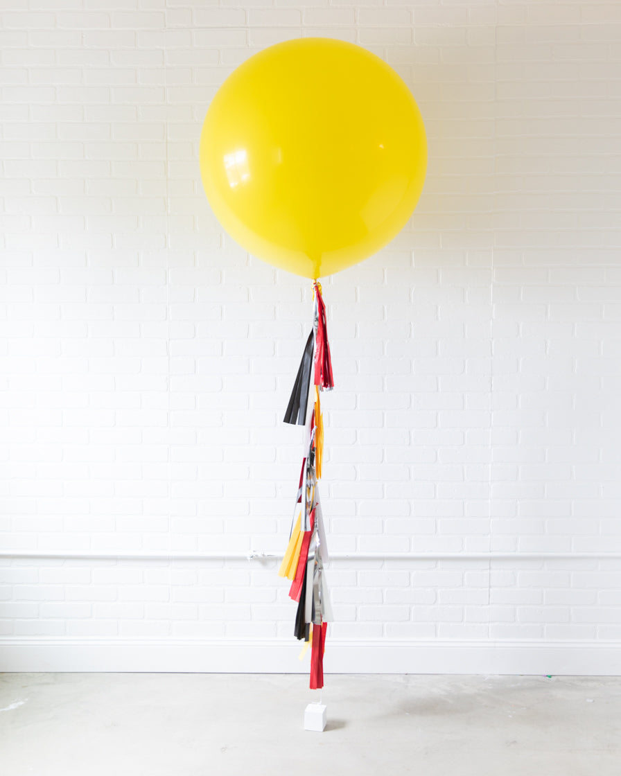 This product is Ready-To-Party™. Comes inflated, on a weight and dressed with tassel. Simply unbag and enjoy!