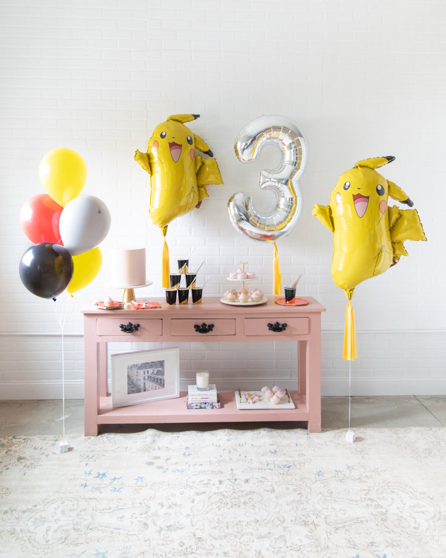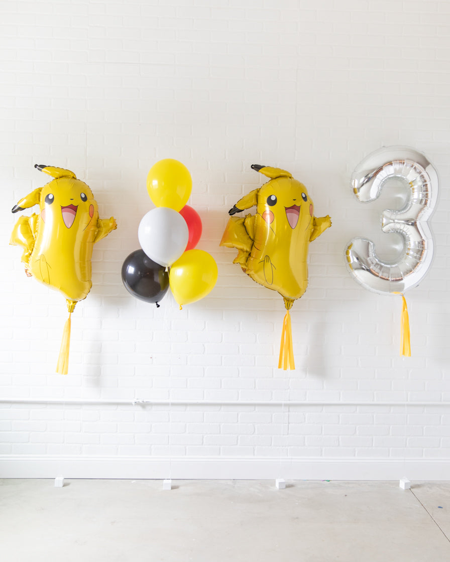 Create an extra fun birthday with this Pokemon party set. This includes two Pikachu balloons, bouquet of latex balloons and a silver number foil balloon. Use this around the room of any space for extra fun birthday decor.