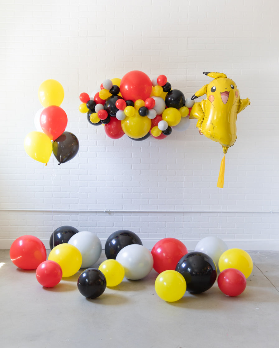 Bring the party to life with this fun and festive Pokemon themed birthday set. This includes a Pikachu balloon and 3ft air filled balloon garland. With a balloon bouquet, add this to your sweets table for an amazing Pokemon themed birthday celebration.