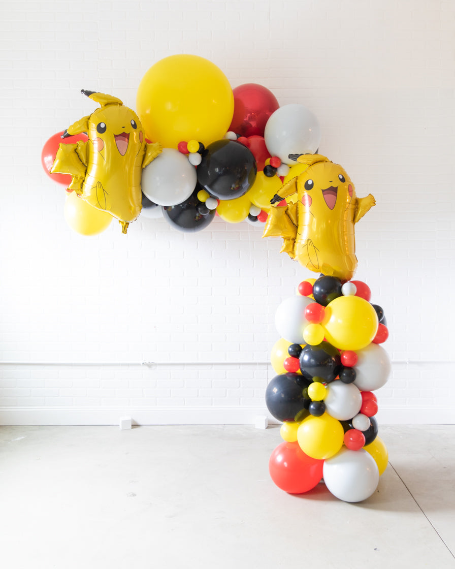 Create a statement for your kids Pokemon themed birthday party with our floating arch and column set. This includes a Pikachu themed floating balloon arch and matching column with a Pikachu themed mylar balloons to make a Pokemon birthday party extra fun.