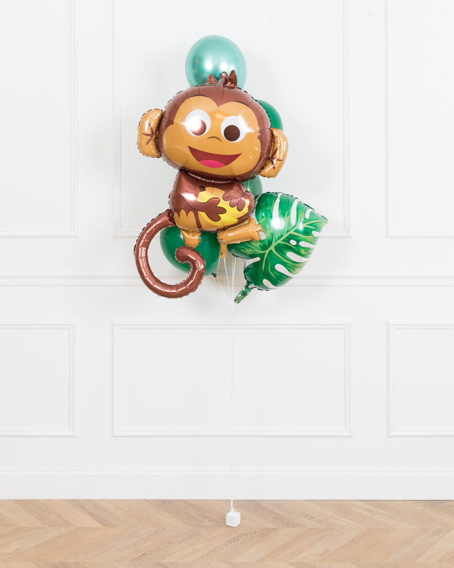 Jungle Theme Monkey Foil and 11in Balloons - bouquet of 7