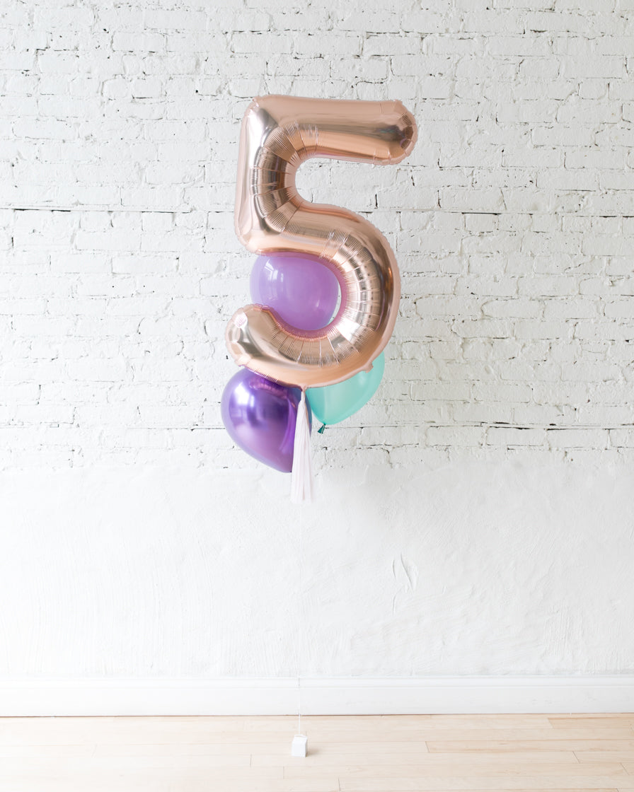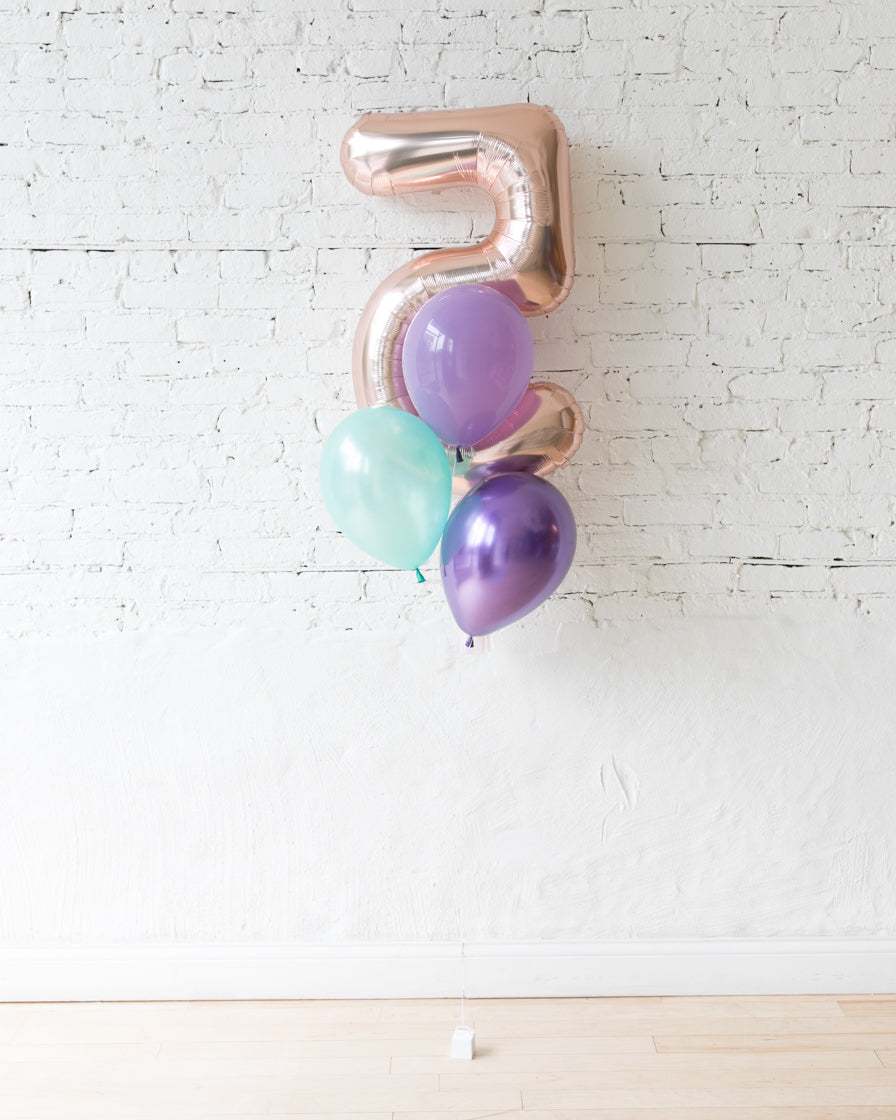 Custom Mermaid Theme Foil Number and latex Balloons - bouquet of 4
