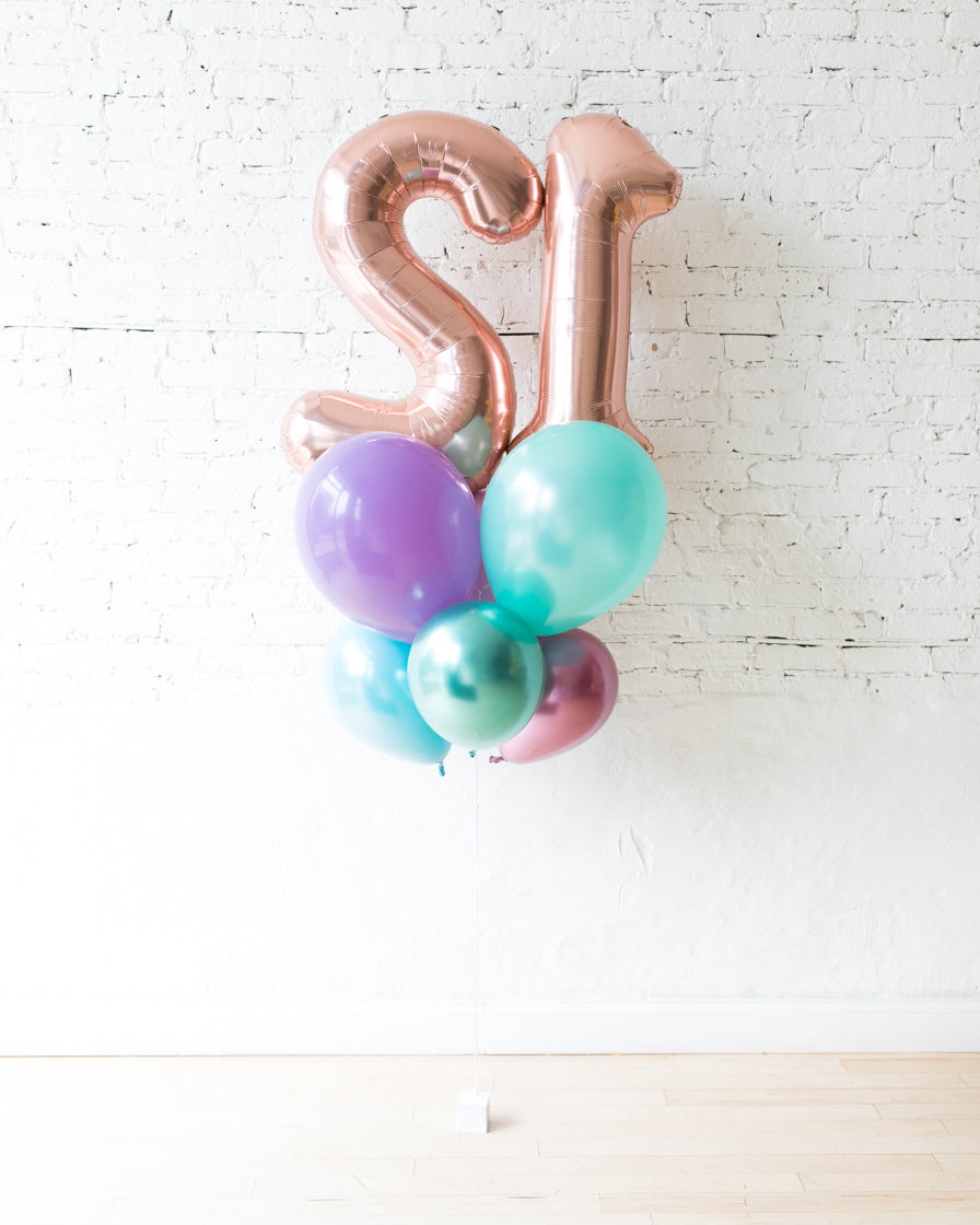 Mermaid Theme - Double-Digit Foil and Latex Balloons - bouquet of 8
