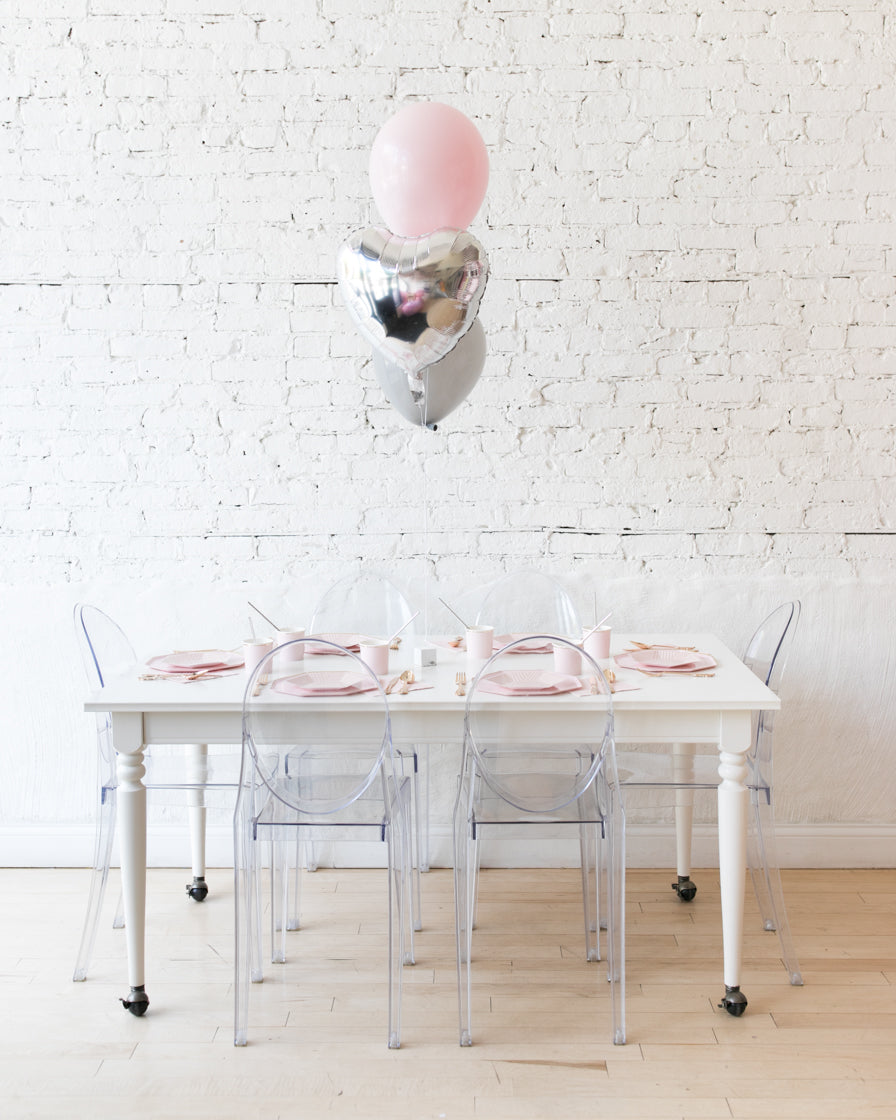 This balloon centerpiece adds a fun touch to your tablescape. Place on dinner table, dessert table, cocktail table or bar cart.