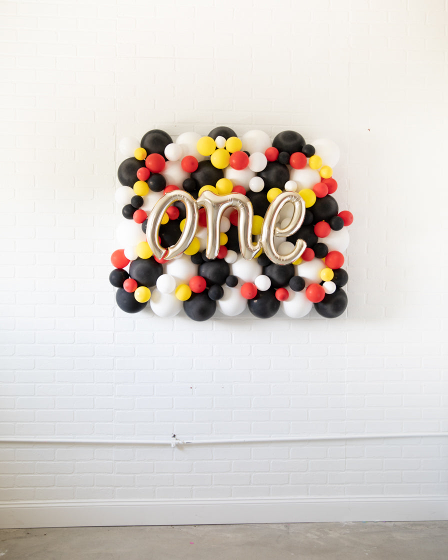 Our race car balloon backdrop is a perfect way to celebrate a kids birthday! This 30" by 40" balloon wall includes an air-filled white gold one script balloon and air filled colorful balloons designed for a kids race car themed party. Use it behind for your sweets table decoration or a photo backdrop. Place above sweet's table or on photo backdrop wall. Complete the look with matching balloon bouquets.