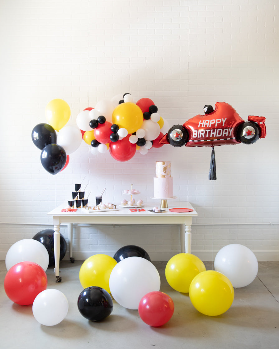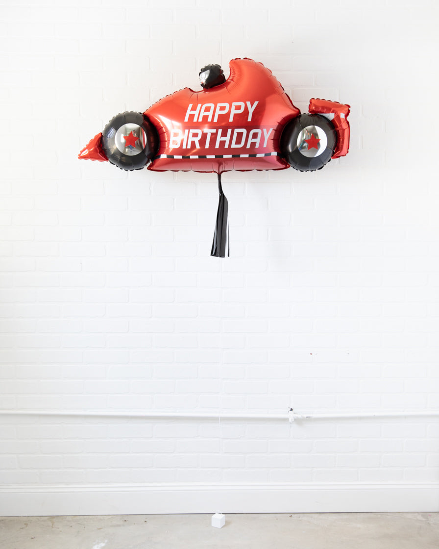 Make your little boys birthday extra fun with our Race Car balloon with a red skirt! Add this to your race car themed birthday party for extra decoration around your sweets table or backdrop.