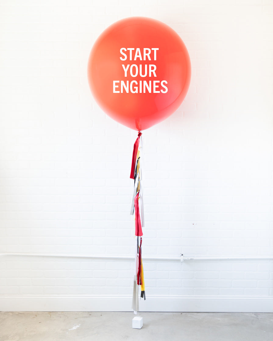 Our race car themed giant balloon is a picture perfect balloon decoration for a birthday. This giant balloon includes a personalized message for added fun! This helium-filled red giant 36" balloon with bold tassel garland is is a fun addition to any kids party. Place near a sweets table or photo backdrop for maximum glam.