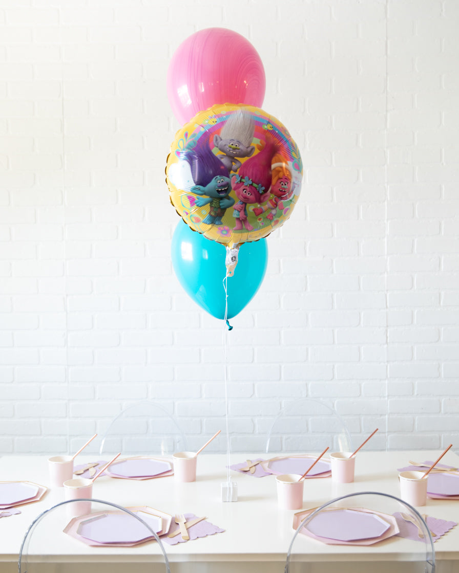 Our 11in balloon and foil centerpiece bouquet is a versatile choice that can dress up any tabletop. Includes a Trolls happy birthday foil balloon, perfect for a kids Trolls themed birthday party. Use for celebrations at home, party room, venue or restaurant.