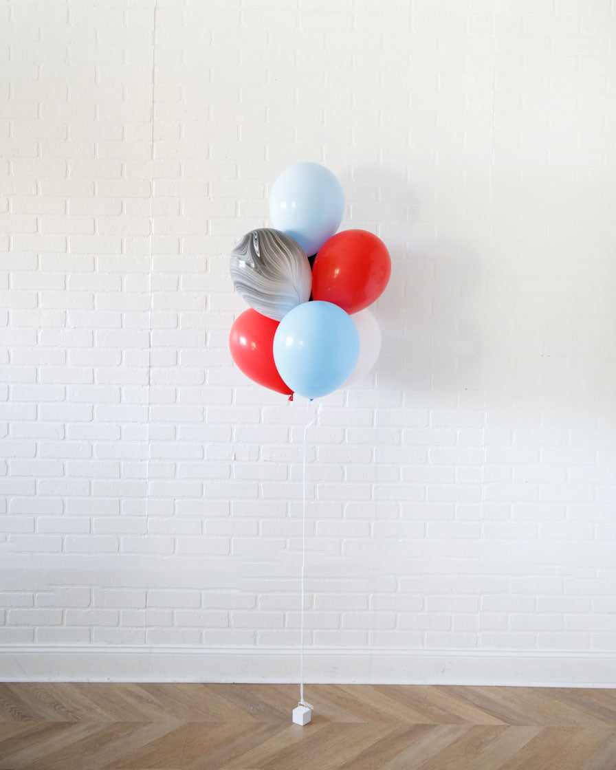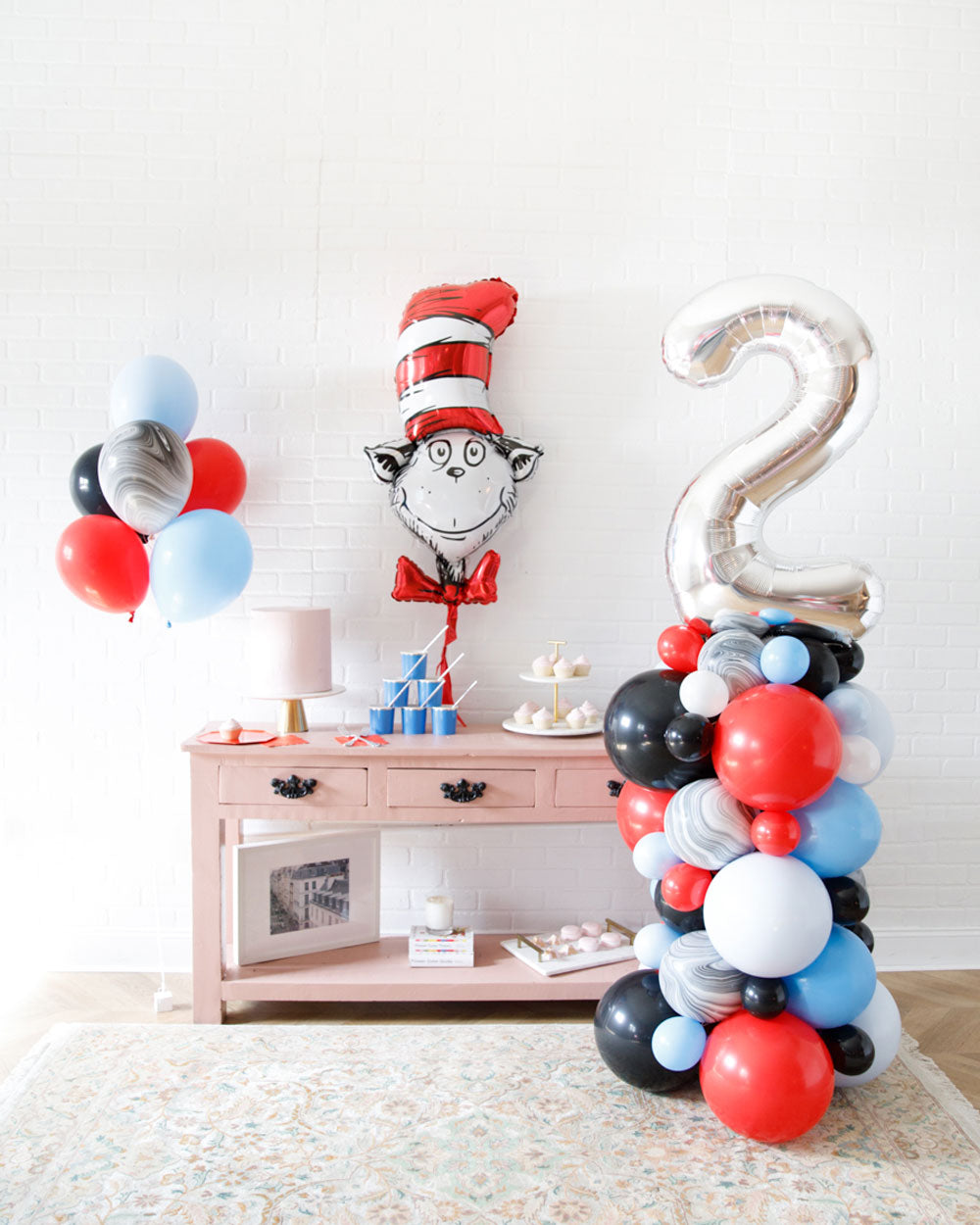 Create an easy and fun birthday with a classic helium-filled balloon bouquet that can dress up any space. Includes 3 balloons in a bright palette of red, blue, and marble for a Dr. Seuss themed kids bash! Perfect for celebrations at home, restaurants or party rooms.