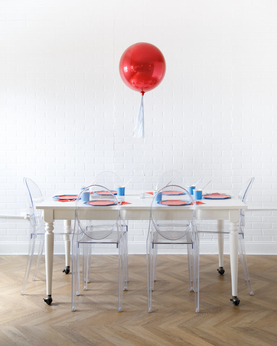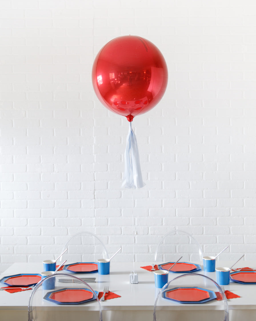 Bring your Dr. Seuss themed party table to life with our red orb with light blue skirt! Add this to tables for a bright pop of color for his Dr. Seuss themed birthday party. Also, a great choice for sweets table and favor's cart.
